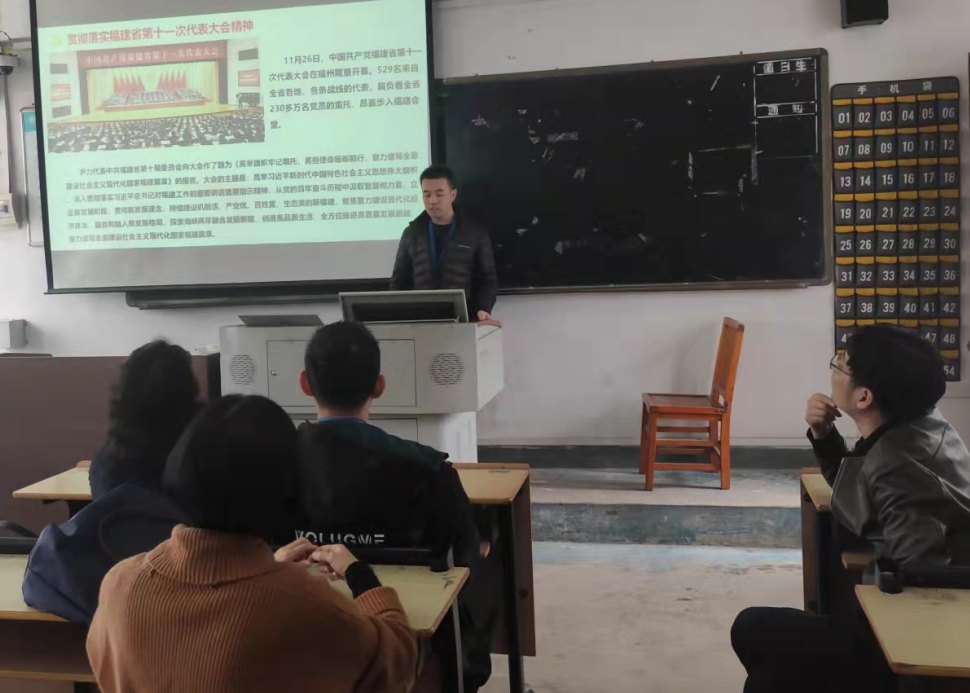 12月15日8#222教室朱劍寶書記引導(dǎo)貫徹落實省委十一屆一次全會精神