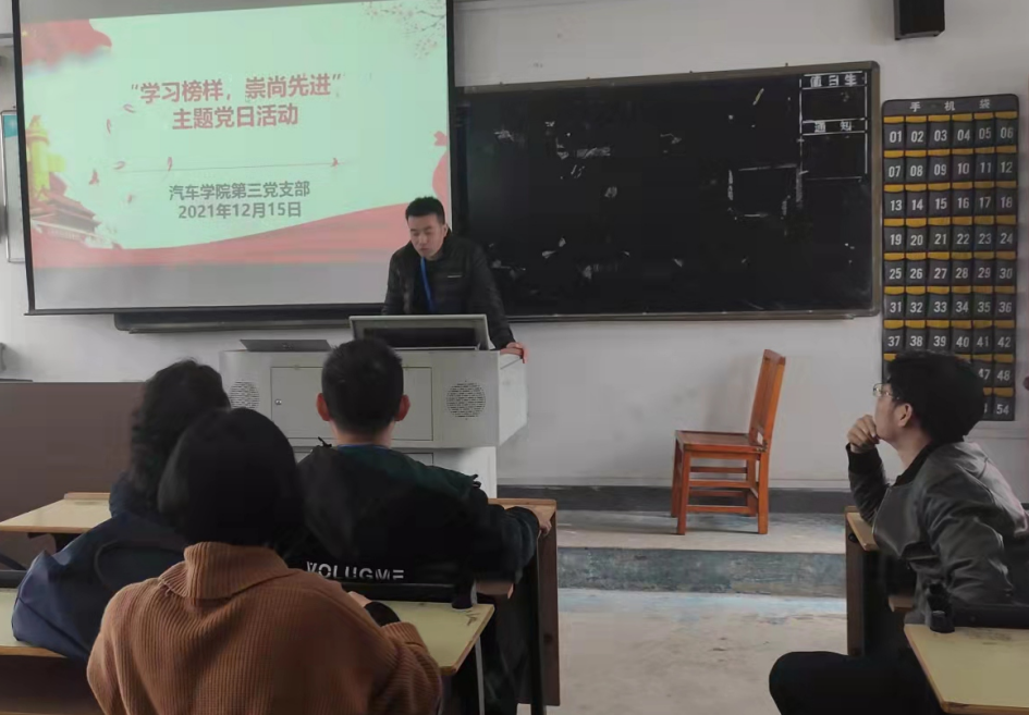 為深入學(xué)習(xí)貫徹習(xí)近平新時代中國特色社會主義思想,充分發(fā)揮先進典型示范引領(lǐng)作用,2021年12月15日,汽車學(xué)院第三黨支部組織了“學(xué)習(xí)榜樣,崇尚先進”主題黨日活動,大力宣傳“七一勛章”獲得者和全國“兩優(yōu)一先”表彰對象的典型事跡,教育引導(dǎo)全體黨員學(xué)習(xí)榜樣、爭做榜樣,營造崇尚先進、見賢思齊的濃厚氛圍。