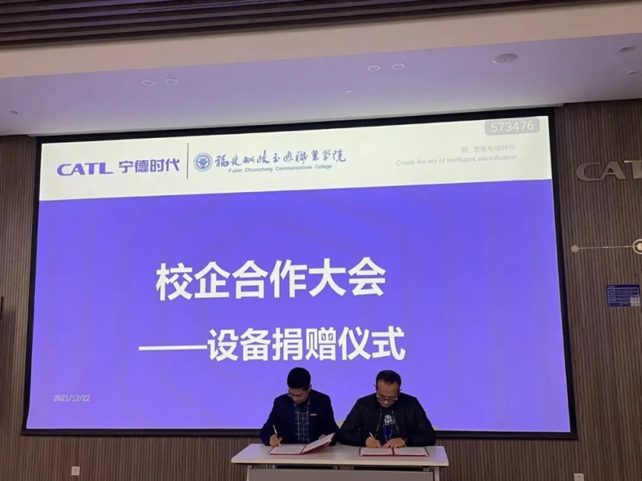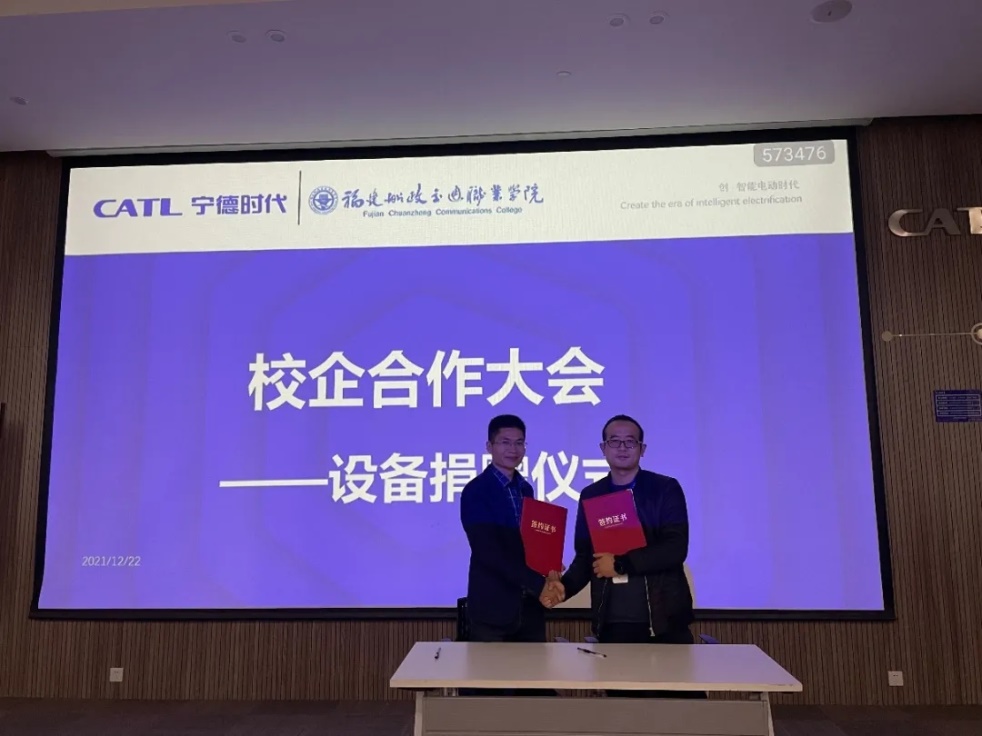 蘇慶列副院長(zhǎng)代表我們學(xué)院與寧德時(shí)代代表曹彬經(jīng)理進(jìn)行了寧德時(shí)代捐贈(zèng)設(shè)備的簽約儀式,寧德時(shí)代將會(huì)捐贈(zèng)一臺(tái)價(jià)值100萬(wàn)元的模切機(jī)給我們學(xué)院。該設(shè)備投入教學(xué)后,將會(huì)完善我們學(xué)院的實(shí)訓(xùn)室條件,使面向?qū)幍聲r(shí)代的訂單班學(xué)生可以提前學(xué)習(xí)并操作企業(yè)的生產(chǎn)設(shè)備,畢業(yè)后實(shí)現(xiàn)與企業(yè)無(wú)縫對(duì)接。