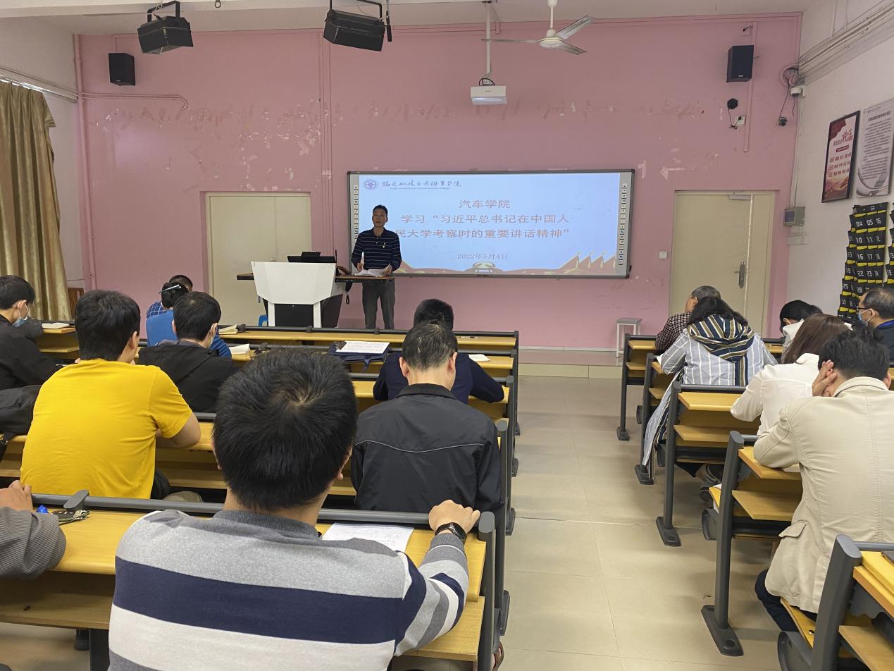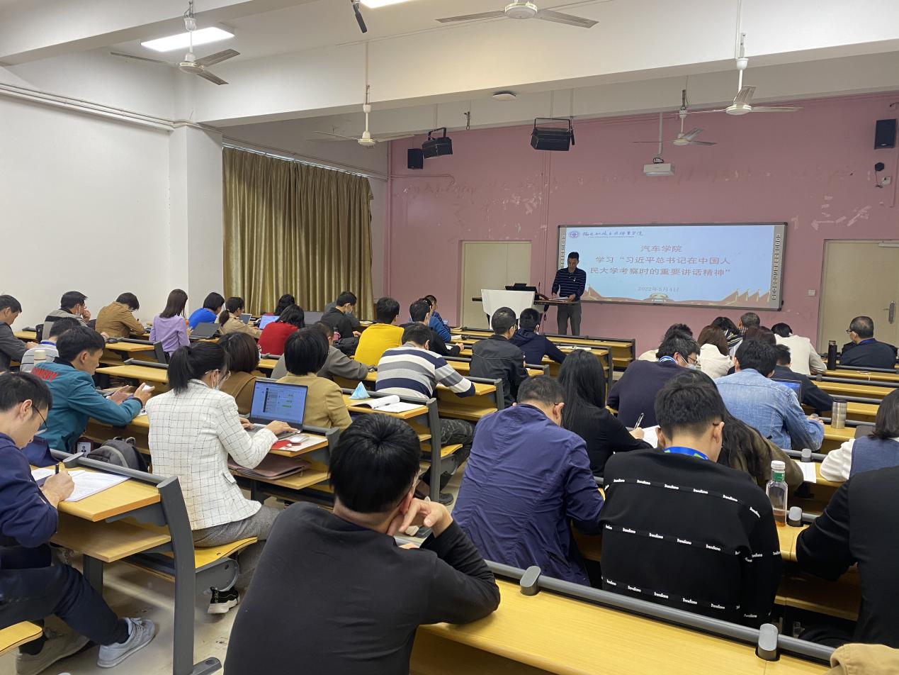 為進(jìn)一步加深我院師生對(duì)習(xí)近平總書記在中國(guó)人民大學(xué)考察時(shí)的重要講話精神的理解,真正讓講話精神做到入腦入心,指導(dǎo)實(shí)踐,5月4日下午,汽車學(xué)院召開(kāi)全體教職工會(huì)議,專題學(xué)習(xí)習(xí)近平總書記在中國(guó)人民大學(xué)考察時(shí)的重要講話精神。汽車學(xué)院全體教職工參會(huì)。