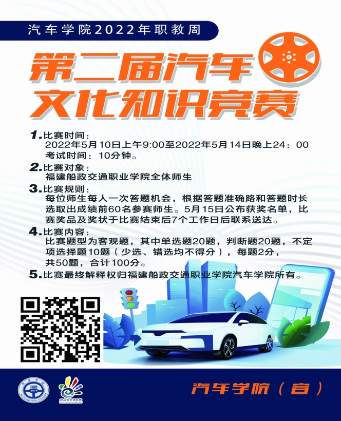 為弘揚(yáng)汽車文化,豐富大學(xué)生課余文化活動,推動校園及社會汽車文化的發(fā)展。在2022年職業(yè)教育周活動之際,5月10日-14日汽車學(xué)院特開展第二屆汽車文化知識競賽,給廣大師生提供交流學(xué)習(xí)的機(jī)會。