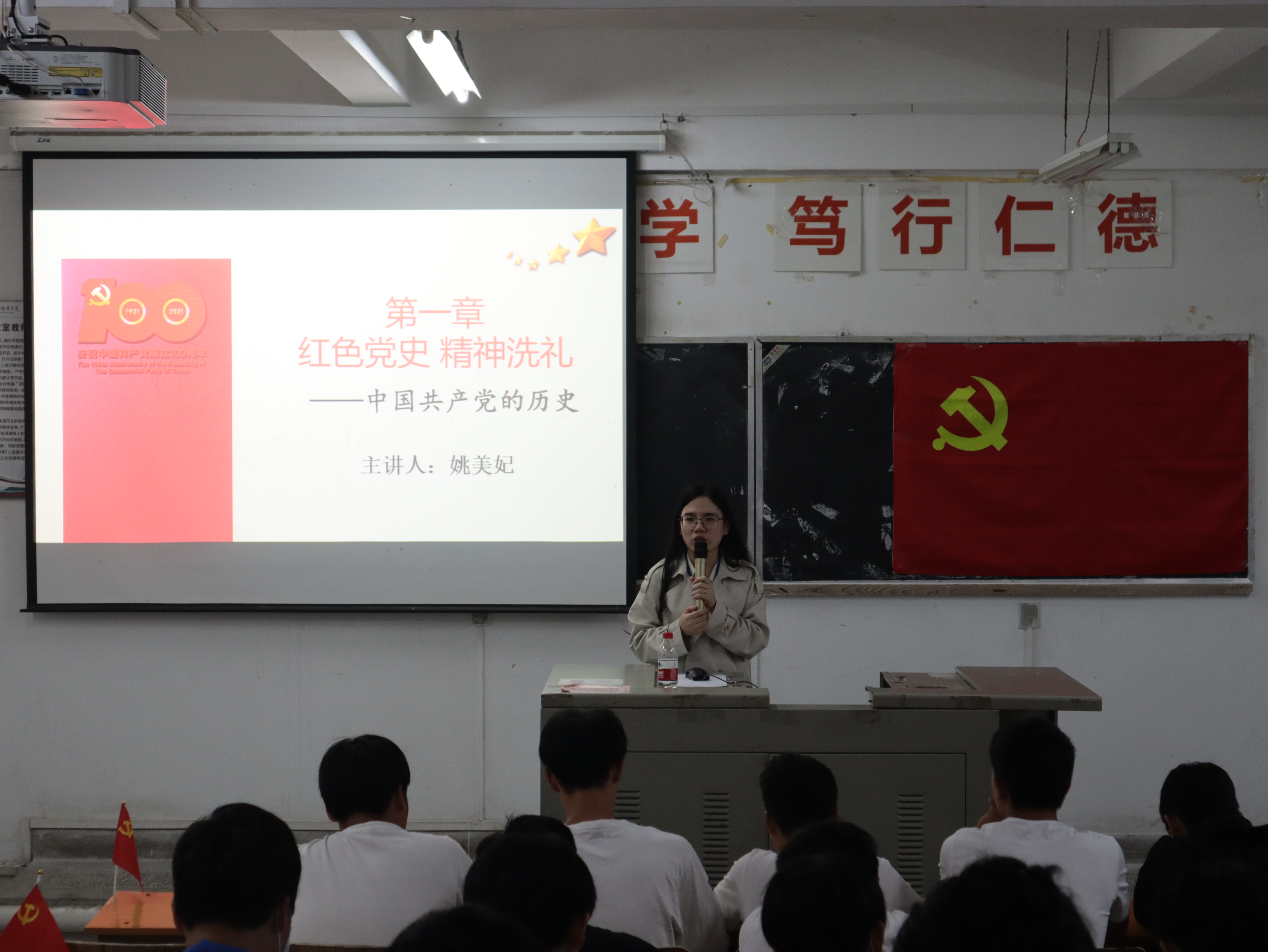 為了進一步提高入黨積極分子黨性修養(yǎng),引導(dǎo)積極分子們不忘初心、牢記使命,勇做奮進的弄潮兒。2022年5月23日,汽車學(xué)院第一黨支部書記姚美妃在北區(qū)22樓第一階梯教室為2021級第一批入黨積極分子上黨課,姚美妃老師此次上課的主題為《紅色黨史,精神洗禮——中國共產(chǎn)黨的歷史》。