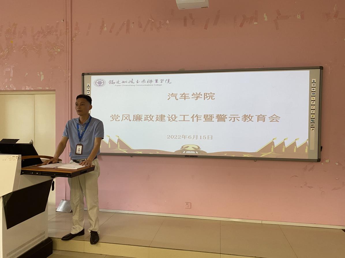 2022年6月15日下午,汽車學院召開2022年黨風廉政建設工作部署暨警示教育會,汽車學院黨政班子、全體黨員干部、教職工參加了會議。