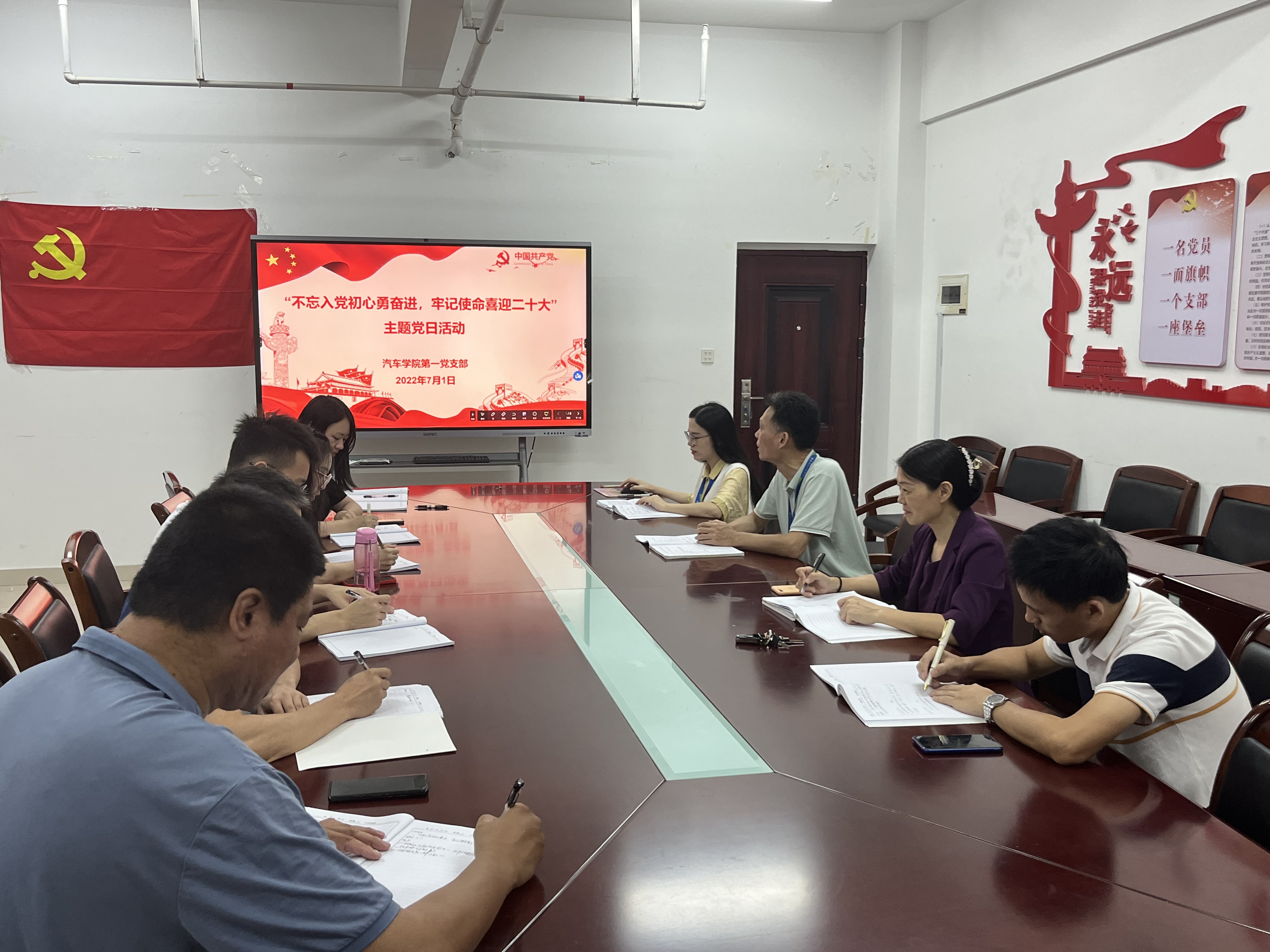 為慶祝中國共產(chǎn)黨成立101周年,迎接黨的二十大勝利召開,進一步教育引導(dǎo)黨員深入學(xué)習習近平新時代中國特色社會主義思想,2022年7月1日,汽車學(xué)院第一黨支部組織開展“不忘入黨初心勇奮進,牢記使命喜迎黨的二十大”主題黨日活動,支部同過“政治生日”活動。