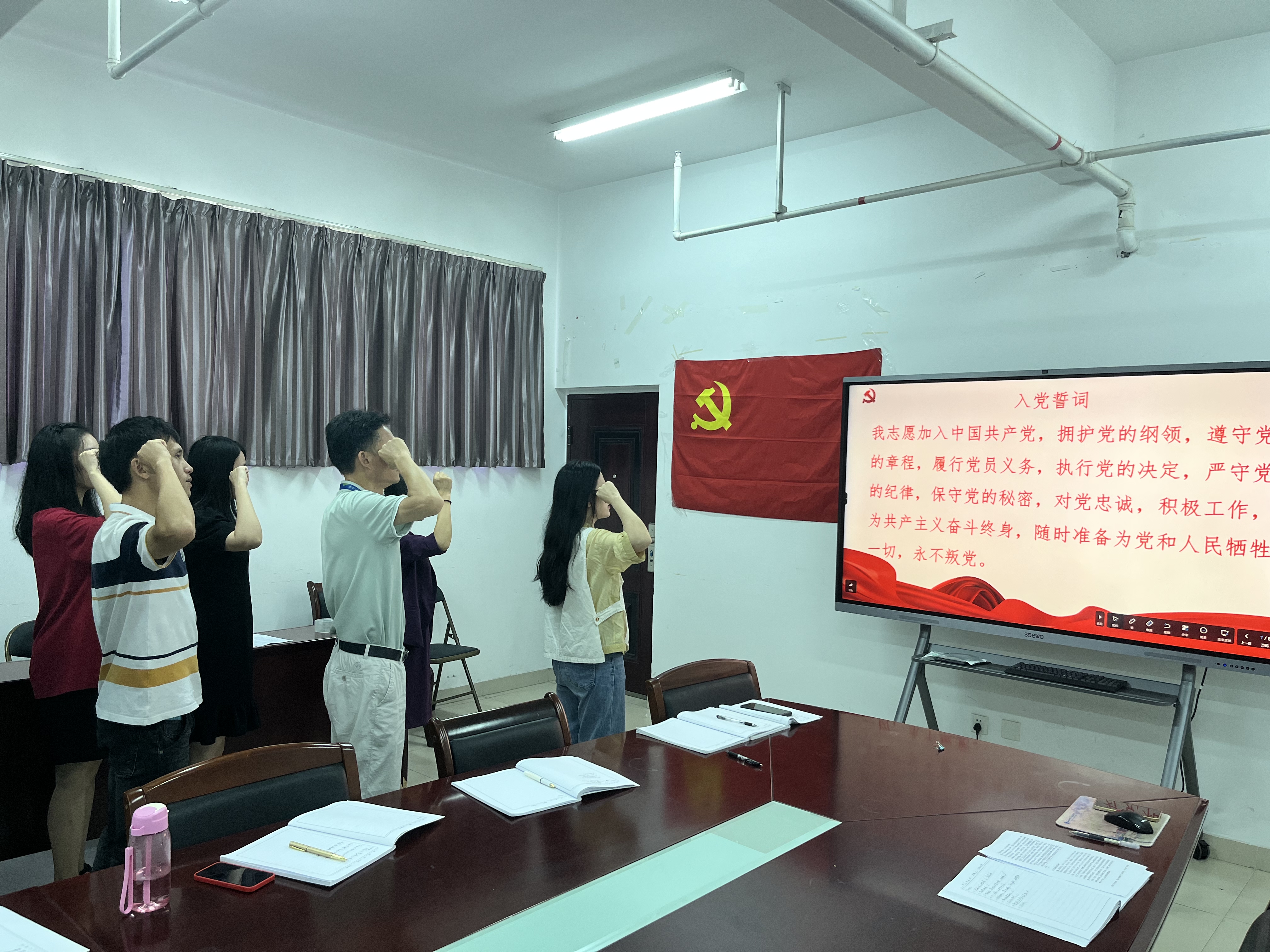 最后,支部書記姚美妃帶領(lǐng)黨員們重溫入黨誓詞。“我志愿加入中國共產(chǎn)黨……隨時準備為黨和人民犧牲一切,永不叛黨?!秉h員在黨支部書記的帶領(lǐng)下,面對鮮紅的黨旗和莊嚴的誓詞,莊嚴宣誓。鏗鏘有力的宣誓,表達了大家對黨的無限忠誠、熱愛和聽黨話、跟黨走的堅定決心。