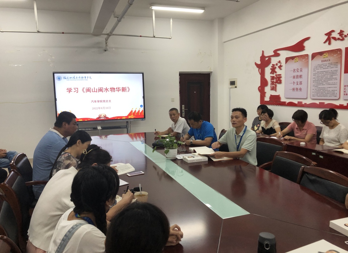 為進(jìn)一步加深對(duì)習(xí)近平新時(shí)代中國(guó)特色社會(huì)主義思想的理解和認(rèn)識(shí),統(tǒng)籌抓好學(xué)院各項(xiàng)工作落實(shí),汽車(chē)學(xué)院于2022年8月16日上午在圖書(shū)館9樓會(huì)議室組織全體教師學(xué)習(xí)《閩山閩水物華新》和《習(xí)近平談治國(guó)理政》第四卷,全體教職工參加會(huì)議,會(huì)議由蔡華錦書(shū)記主持。