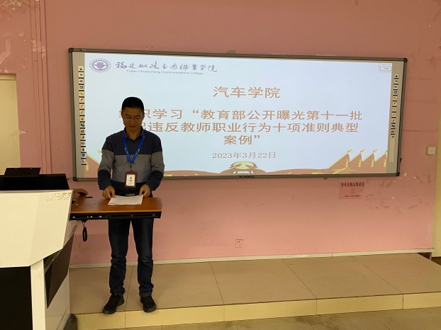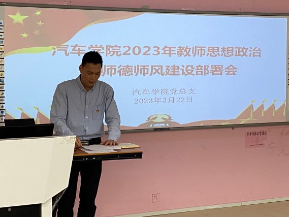 3月22日下午,汽車學院在2號樓1-3教室召開2023年師德師風工作建設(shè)工作部署會。學院領(lǐng)導班子及全體教職工參會。會議由學院書記蔡華錦主持。