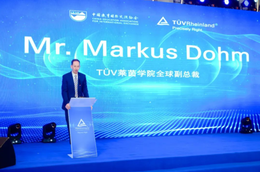 中國教育國際交流協(xié)會(huì)副秘書長余有根、德國駐上海副總領(lǐng)事盧永勝(Lukas Meyer)、上海市教育委員會(huì)國際交流處處長周勤健、TüV萊茵學(xué)院與生命關(guān)懷全球執(zhí)行副總裁Markus Dohm、TüV萊茵學(xué)院大中華區(qū)副總裁林小霞先后在啟動(dòng)儀式上致辭。
