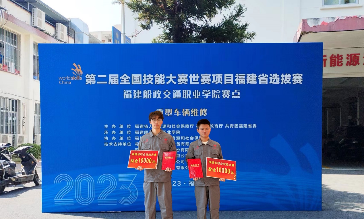 本屆大賽重型車輛維修項(xiàng)目,由福州市倉山區(qū)人力資源與社會保障局協(xié)辦,福建船政交通職業(yè)學(xué)院汽車學(xué)院具體承辦,全省共8所院校和1家企業(yè)的16名選手在我校北區(qū)11號樓賽點(diǎn)展開為期2天的競賽角逐,最終我校21級新能源汽車技術(shù)4班的楊祺和楊振羽同學(xué)榮獲本賽項(xiàng)的金獎和銀獎。