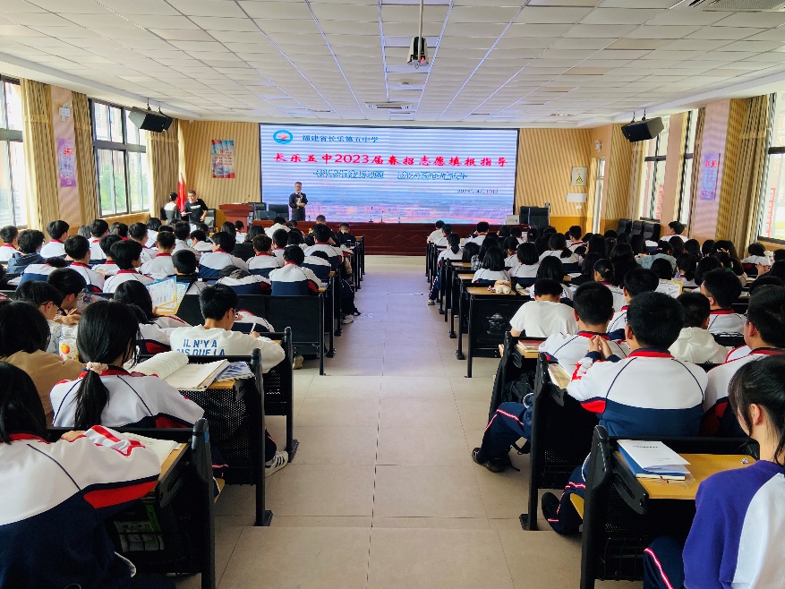 此次活動由長樂五中歐俤俤主任主持,共有師生300余人參加。汽車學院副院長林可春、朱劍寶等人分別從國家職業(yè)教育新政策、優(yōu)秀高職畢業(yè)生典型案例、志愿填報方法和技巧等方面開展職業(yè)啟蒙教育宣講、招生宣傳及春招志愿指導。