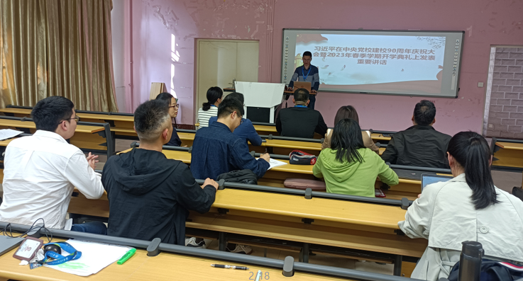 2023年3月22日,汽車學(xué)院第二黨支部召開專題學(xué)習(xí)會,傳達(dá)學(xué)習(xí)貫徹習(xí)近平總書記在中央黨校建校90周年慶祝大會暨2023年春季學(xué)期開學(xué)典禮上的重要講話精神,全體支部黨員參會。