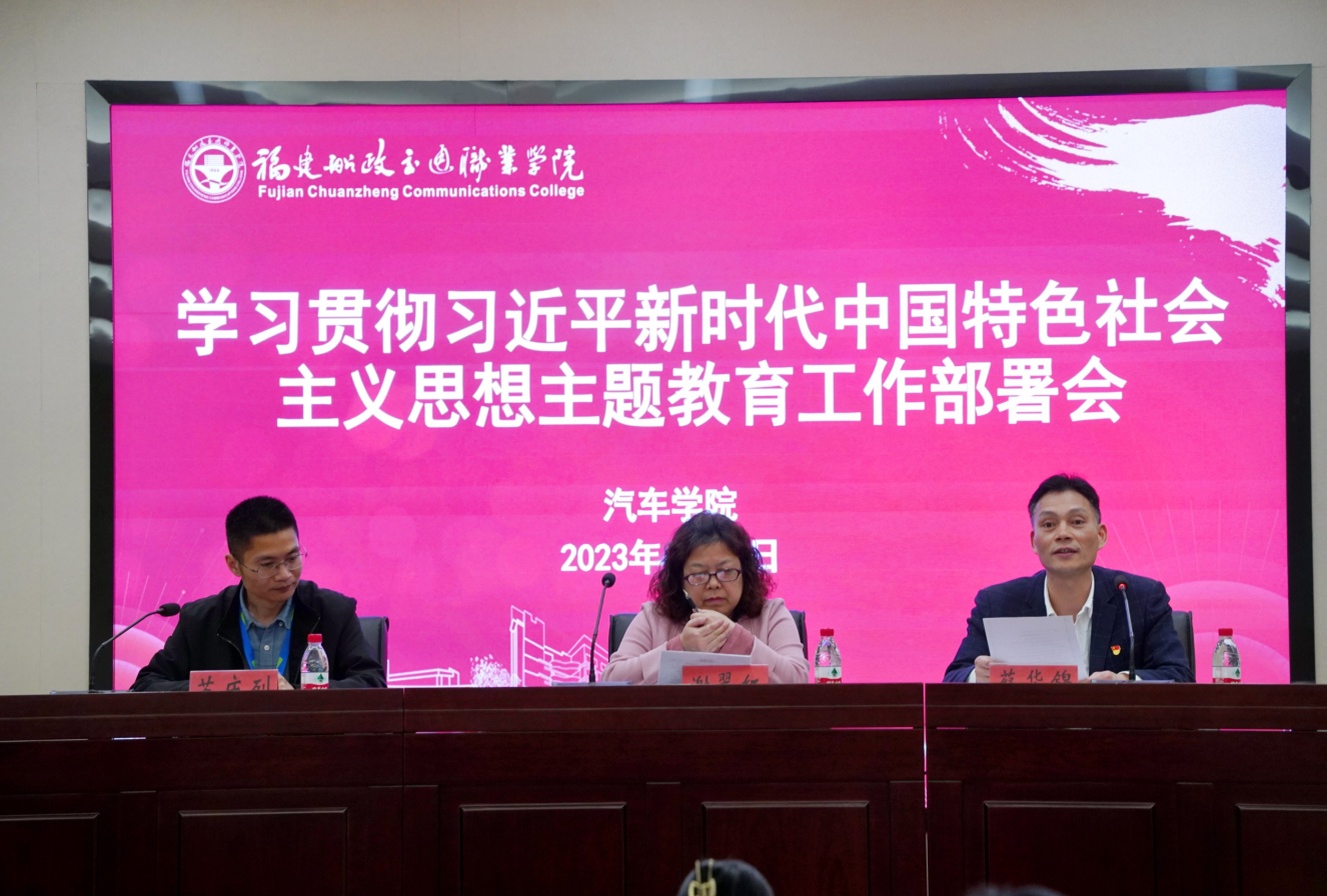 2023年4月26日下午,汽車學(xué)院在福船園藝新樓學(xué)術(shù)報(bào)告廳303召開學(xué)習(xí)貫徹習(xí)近平新時(shí)代中國(guó)特色社會(huì)主義思想主題教育工作部署會(huì),學(xué)校主題教育協(xié)調(diào)推進(jìn)二組組長(zhǎng)紀(jì)委辦公室副處級(jí)紀(jì)檢員謝翠紅、宣傳統(tǒng)戰(zhàn)部副部長(zhǎng)林文昌及汽車學(xué)院全體黨員參加了會(huì)議。