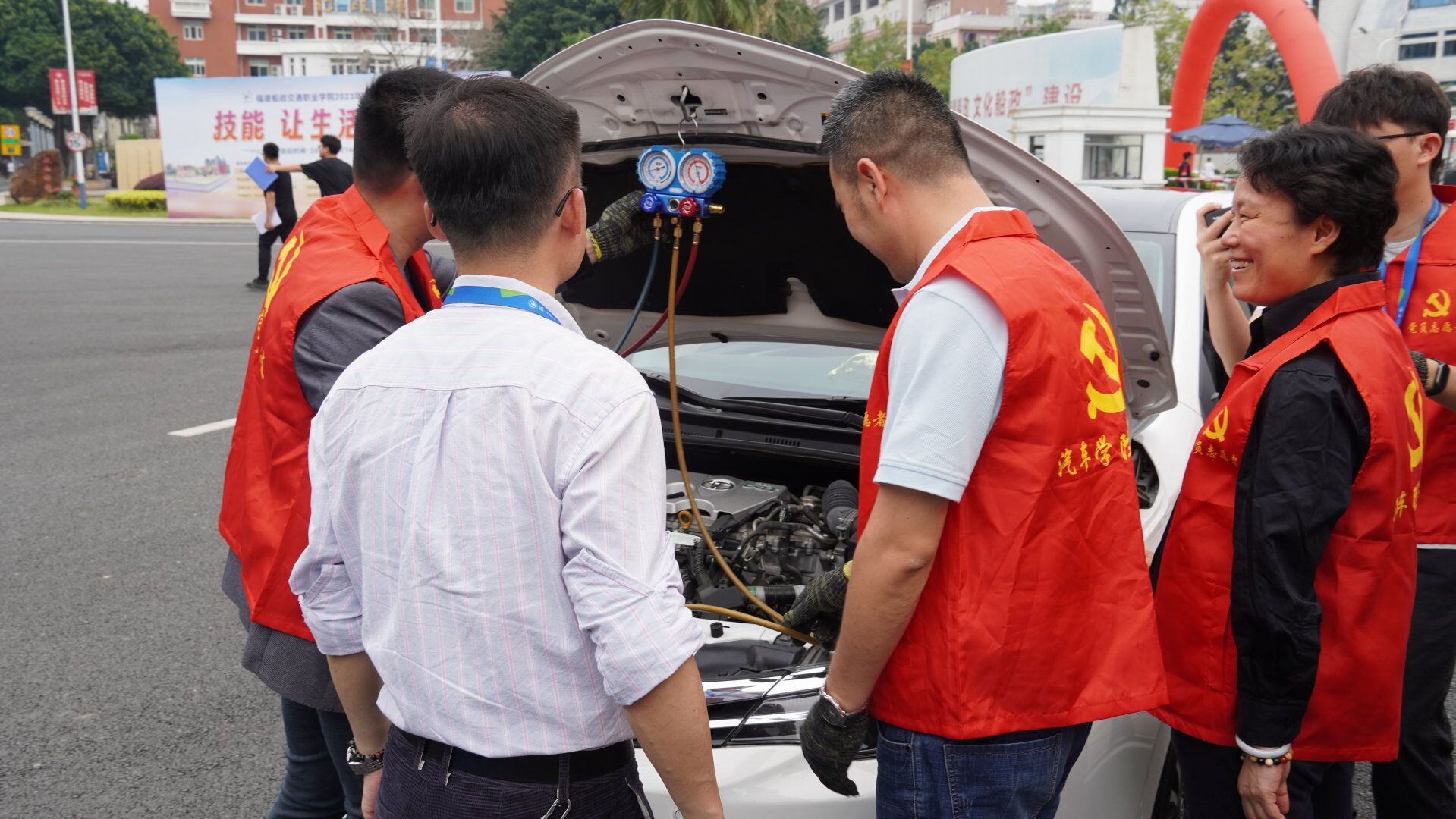 為深入學(xué)習(xí)貫徹黨的二十大精神,積極踐行“為民服務(wù)”初心,2023年5月14日汽車學(xué)院第三黨支部黨員書記朱劍寶同志利用職教周校園開(kāi)放日,組織黨員教師,帶領(lǐng)學(xué)生一起在福建船政交通職業(yè)學(xué)院北區(qū)籃球場(chǎng)旁開(kāi)展志愿服務(wù),免費(fèi)為群眾檢修保養(yǎng)汽車。