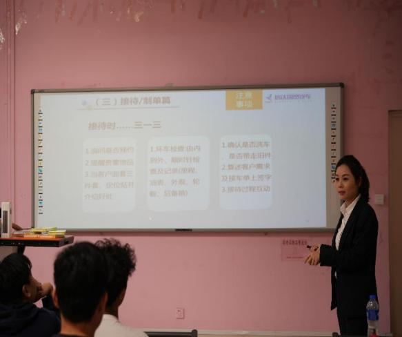 此次講座邀請(qǐng)了廈門(mén)信達(dá)國(guó)貿(mào)汽車(chē)集團(tuán)有限公司金牌培訓(xùn)師林燕玲女士。林燕玲女士為同學(xué)們就如何做好汽車(chē)售后服務(wù)崗位的職場(chǎng)規(guī)劃進(jìn)行指導(dǎo),同時(shí)講授了汽車(chē)銷(xiāo)售技巧、汽車(chē)前臺(tái)接待等方面的內(nèi)容,通過(guò)此次講座,學(xué)生們得以全面了解4S店的運(yùn)營(yíng)模式以及銷(xiāo)售、接待、維修、保養(yǎng)等各個(gè)環(huán)節(jié)的基本知識(shí)與接待技巧。
