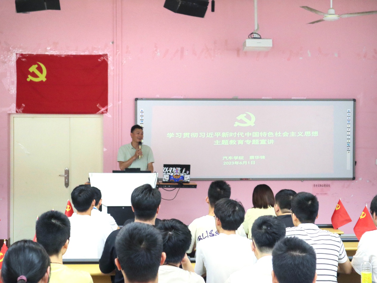 為了深入學(xué)習(xí)貫徹習(xí)近平新時(shí)代中國特色社會(huì)主義思想,進(jìn)一步推動(dòng)開展學(xué)習(xí)貫徹習(xí)近平新時(shí)代中國特色社會(huì)主義思想主題教育在學(xué)院走深做實(shí), 2023年6月1日,汽車學(xué)院黨總支蔡華錦書記在自強(qiáng)樓1-3教室開展學(xué)習(xí)貫徹習(xí)近平新時(shí)代中國特色社會(huì)主義思想主題教育宣講會(huì)。輔導(dǎo)員、全體學(xué)生黨員參加宣講會(huì)。
