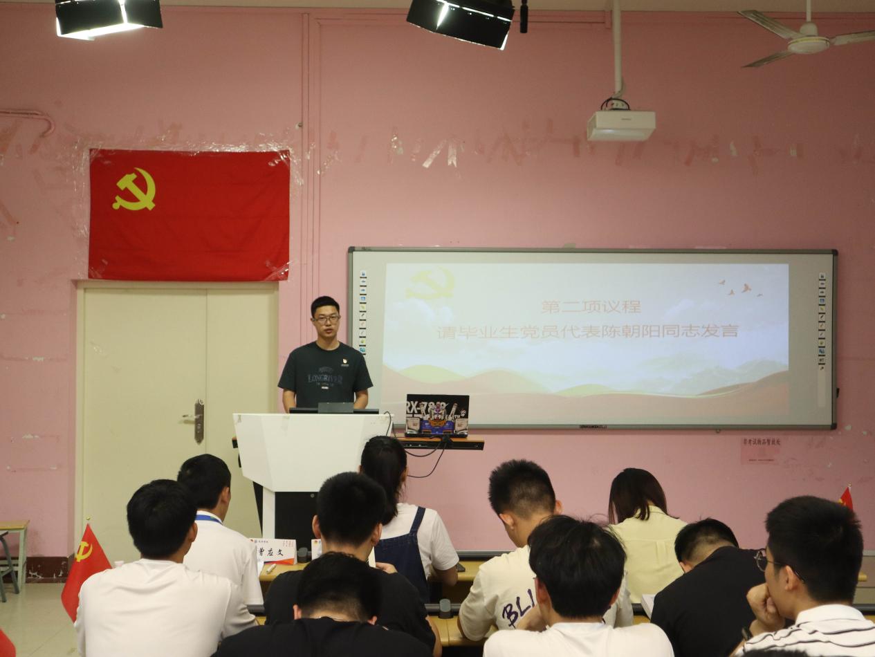 會上,畢業(yè)生黨員陳朝陽同志分享了自己的入黨歷程,暢談入黨以來的感受和體會,用樸實的語言講述自己對黨的感情,感謝學校和老師的培養(yǎng),并承諾畢業(yè)之后依舊會自覺遵守黨紀黨規(guī),發(fā)揮黨員先鋒作用,不忘初心,牢記職責使命,繼續(xù)在工作崗位中為人民服務。