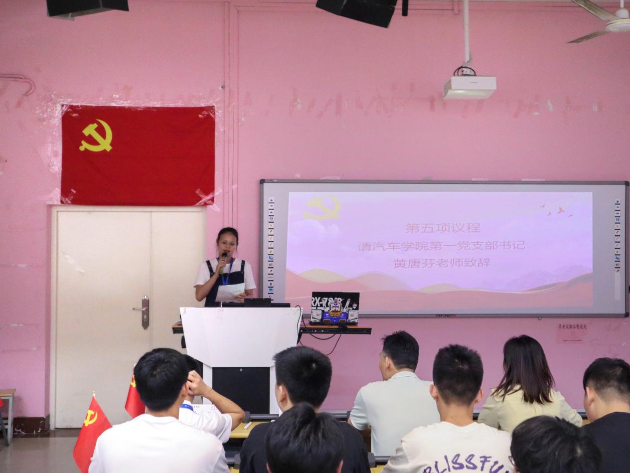 最后,汽車學院第一黨支部書記黃唐芬老師結(jié)合畢業(yè)生黨員的實際情況,指出畢業(yè)生黨員要立安身之處、蓄發(fā)展之力、懂為人之道、修處世之行、固進步之念,同時勉勵畢業(yè)生黨員要鑄“三大”、煉“三功”、樹“三氣”、學“三立”,殷切寄語畢業(yè)生黨員要時刻牢記自己的黨員身份,保持高度的組織紀律性,保持黨員的先進性,永葆共產(chǎn)黨員的政治本色。