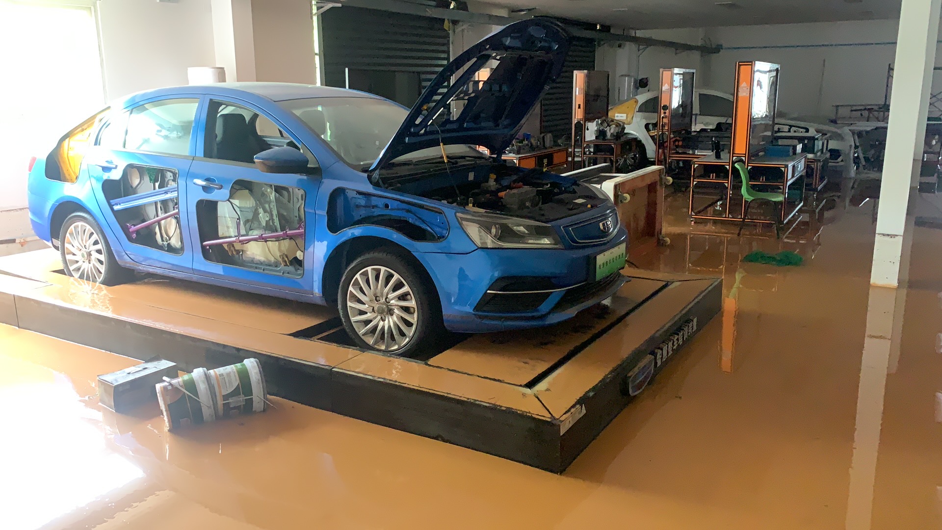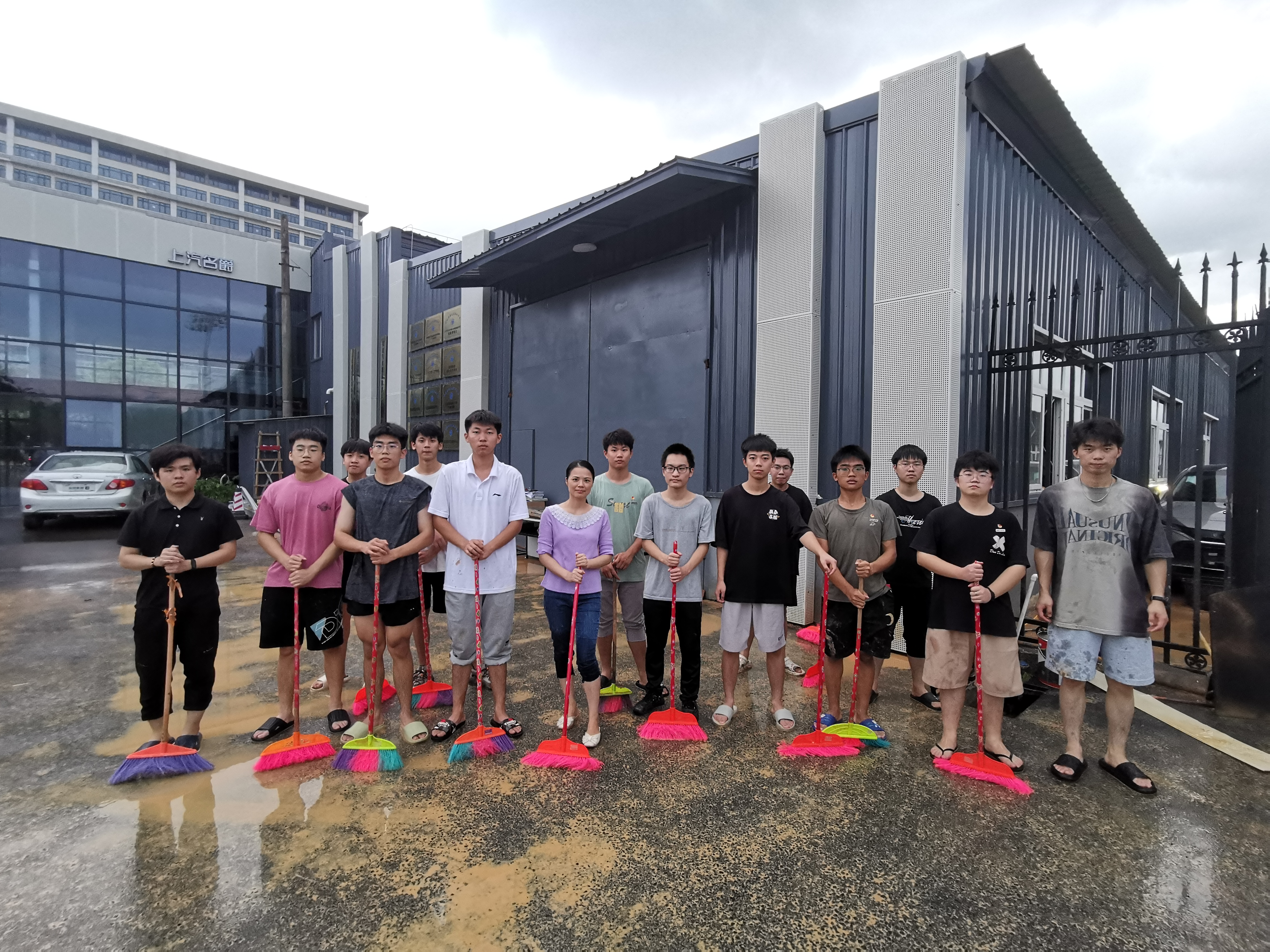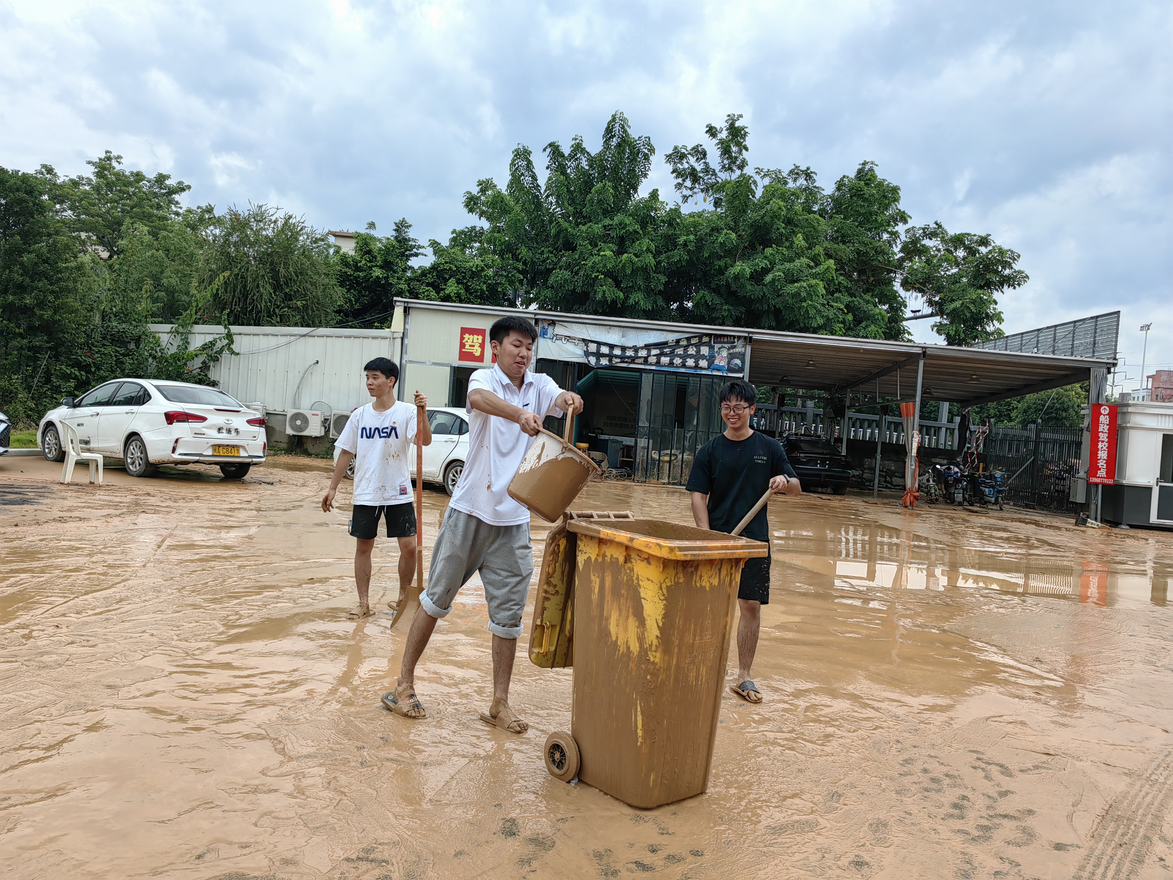 臺風“??眮韯輿皼埃V菰庥霰┯暌u擊。受暴雨影響,汽車學(xué)院中區(qū)新能源汽車產(chǎn)教融合示范園、學(xué)生宿舍樓一樓均出現(xiàn)泡水積水,嚴重影響到學(xué)校的教學(xué)工作和學(xué)生的學(xué)習(xí)生活。特別是中區(qū)的實訓(xùn)室,淤泥堆積嚴重,清潔工作難度大。汽車學(xué)院黨總支積極響應(yīng)校黨委號召,組織全體教職工、近600人次的學(xué)生志愿者,傾盡全力參與到臺風暴雨后的實訓(xùn)室及校園的清潔修復(fù)工作。攜手同心,“人進淤泥退”,經(jīng)過近一天的努力,在最短時間內(nèi)恢復(fù)校園學(xué)習(xí)生活秩序。