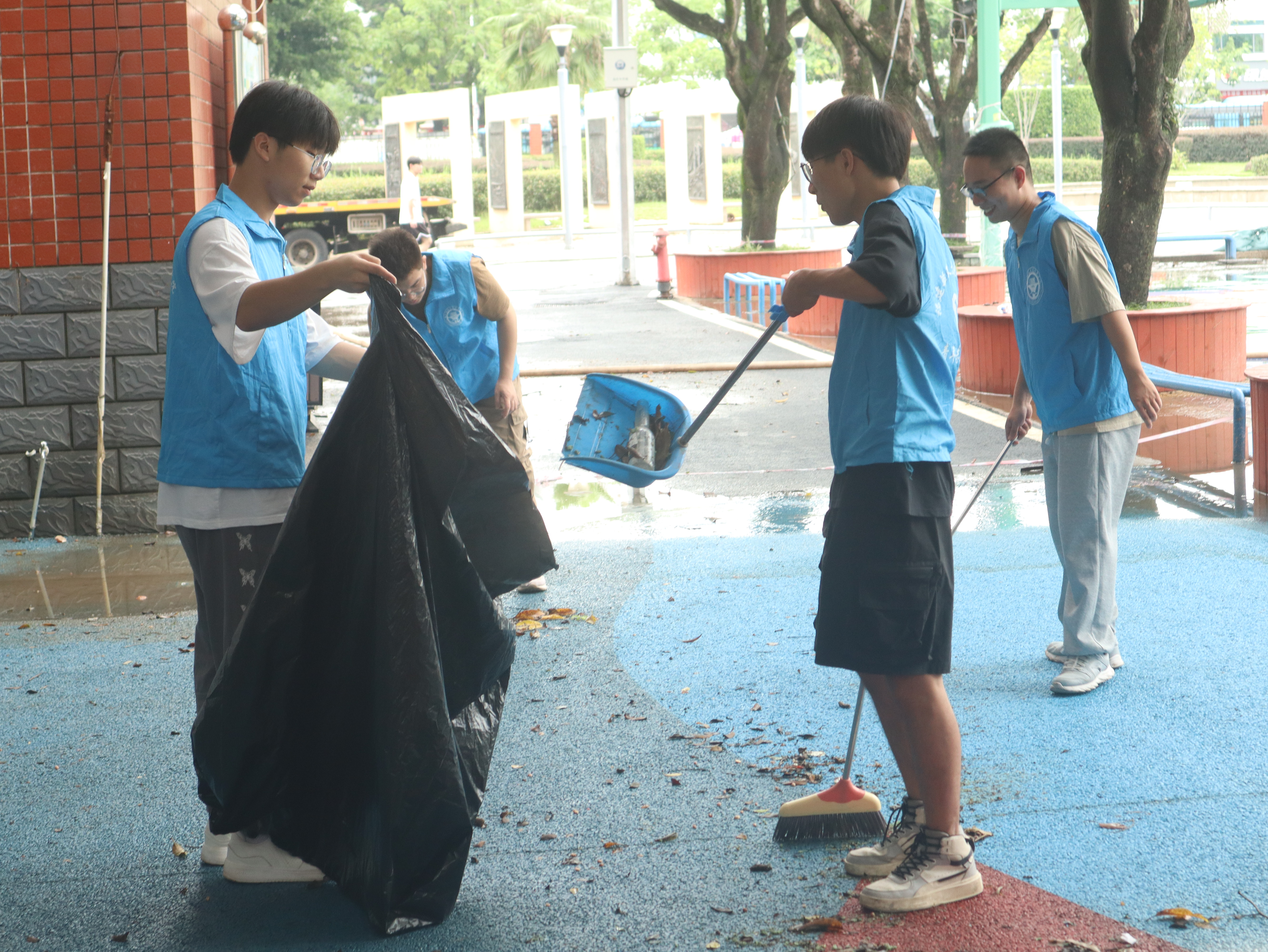 汽車學(xué)院分團委組建青年突擊隊,志愿者們積極報名參加。他們協(xié)助清理宿舍樓一樓泡水過后的狼藉、掃除籃球場上泛著酸臭味的淤泥垃圾,北區(qū)校園里的草坪、走道上,伴隨著一個個青年身影的忙碌穿梭,校園逐步恢復(fù)干凈整潔!