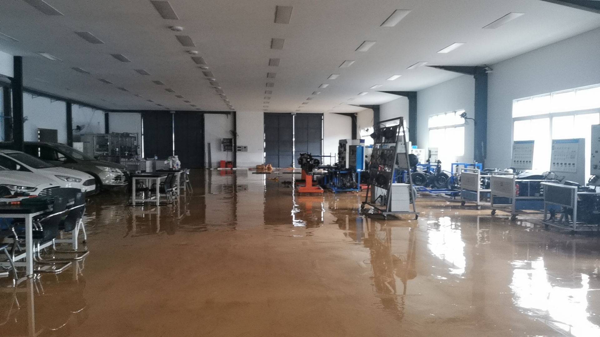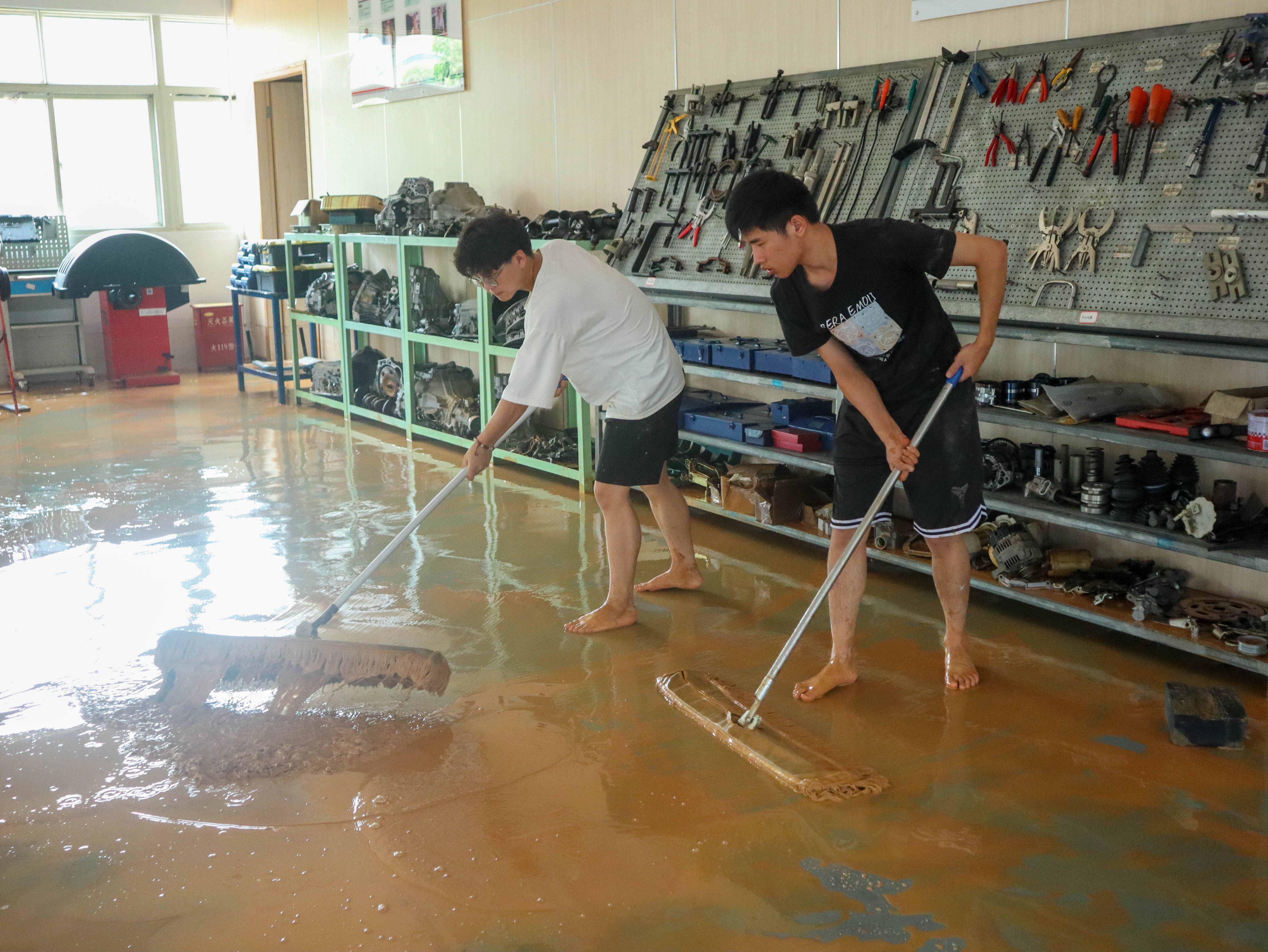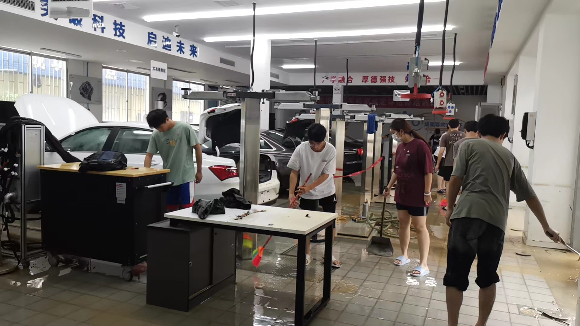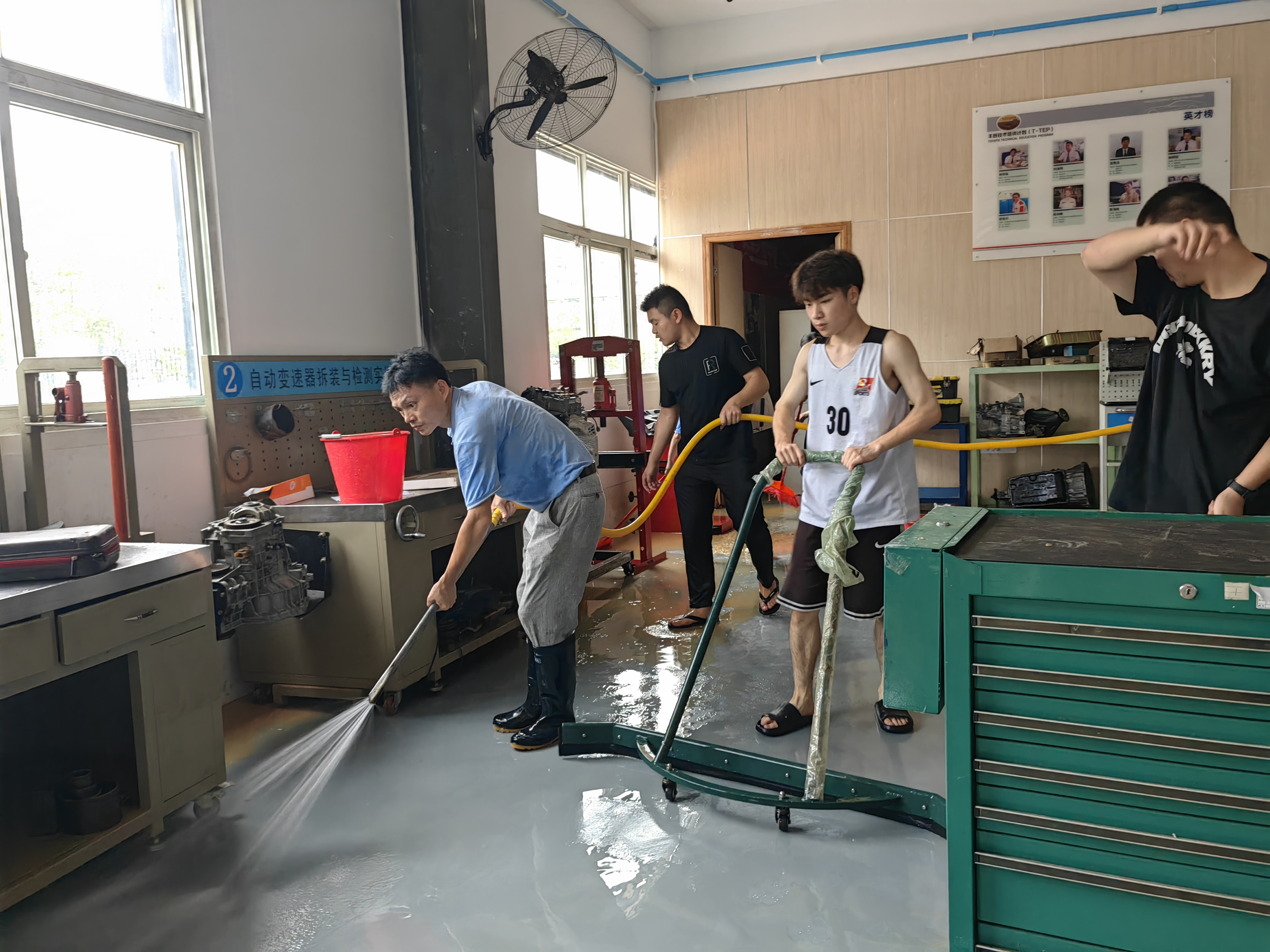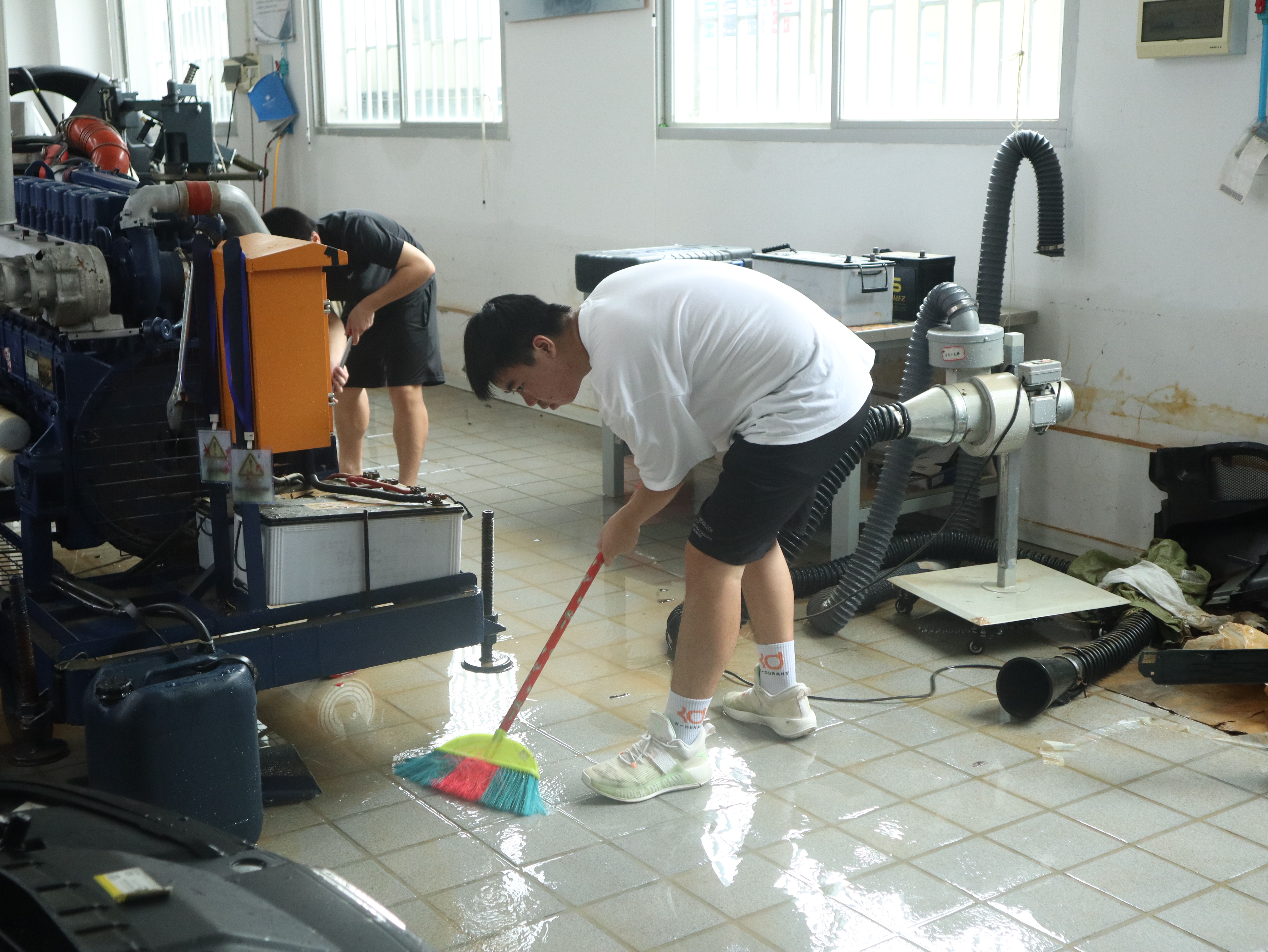 9月5日晚上開始的持續(xù)特大暴雨,學(xué)院上下齊心,確保了學(xué)生的安全穩(wěn)定。但風雨過后,大量雨水裹挾泥沙滲入實訓(xùn)室。