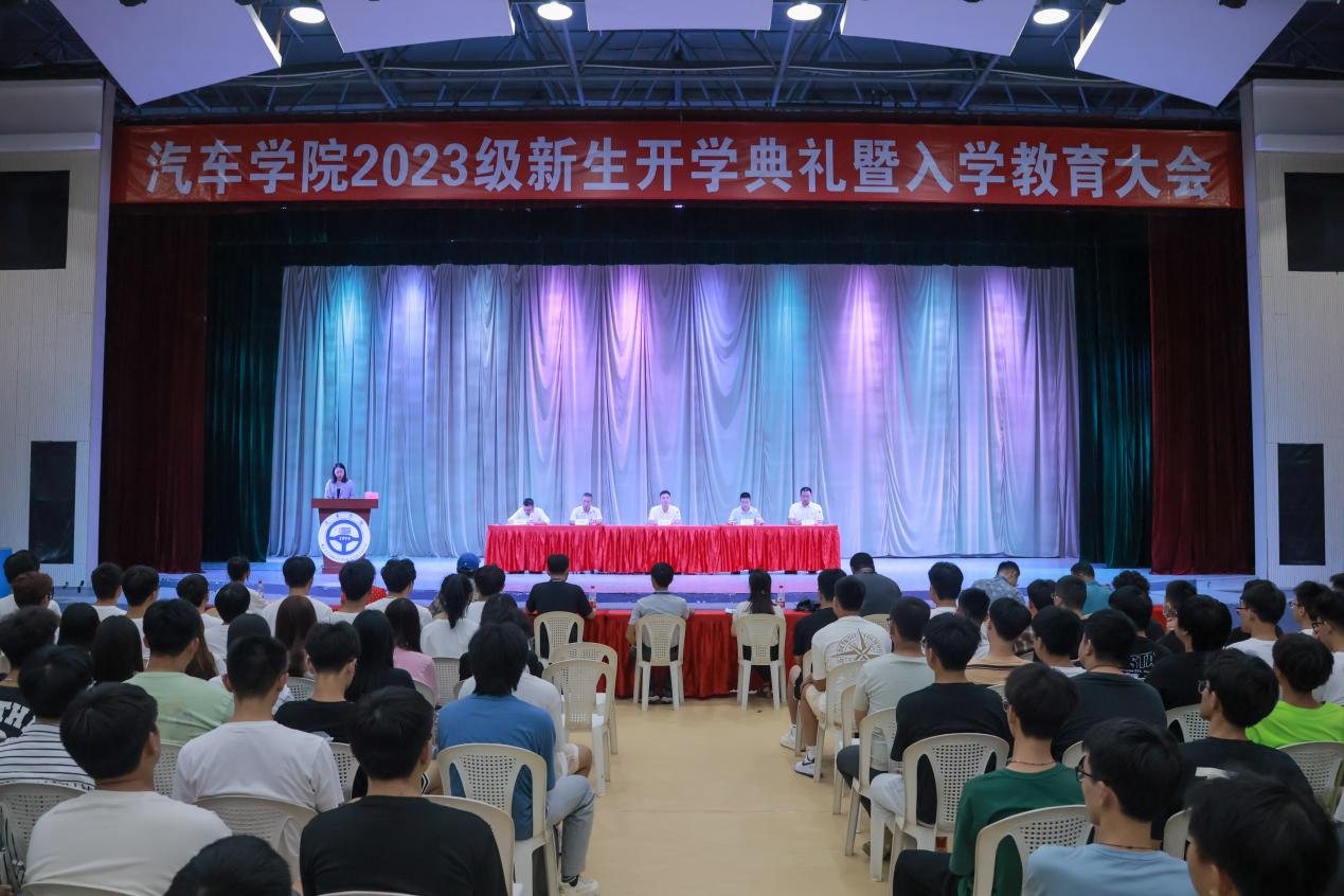 2023年9月28日,汽車學院在文體中心召開2023級新生開學典禮暨入學教育大會。汽車學院黨政領導班子、輔導員、教師代表以及全體2023級新生參加此次典禮。本次典禮,由汽車學院分團委書記余晨煒老師主持。