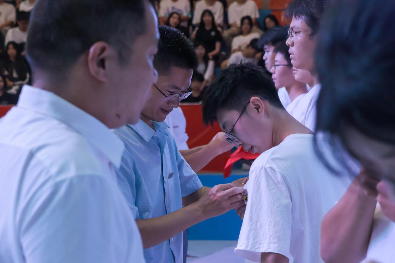 學院領導為新生代表授予并佩戴校徽