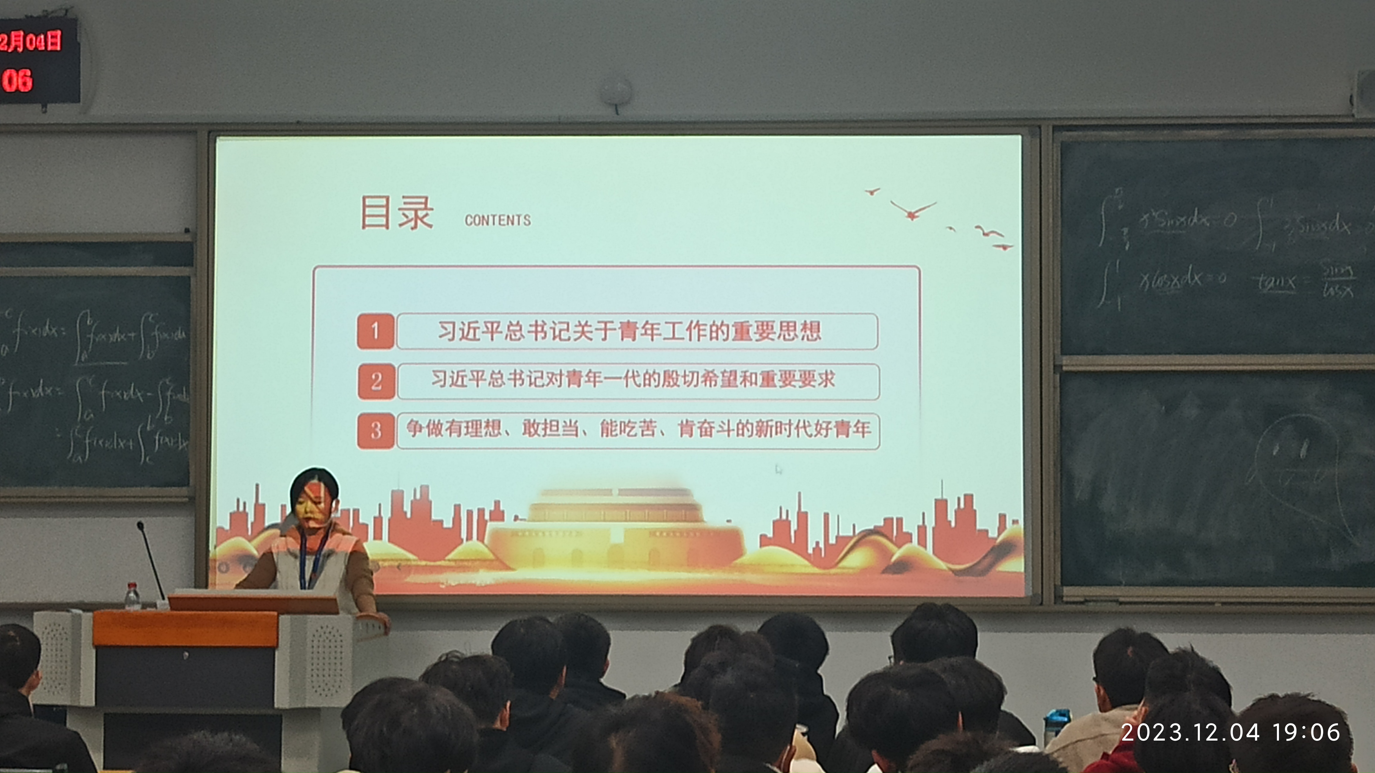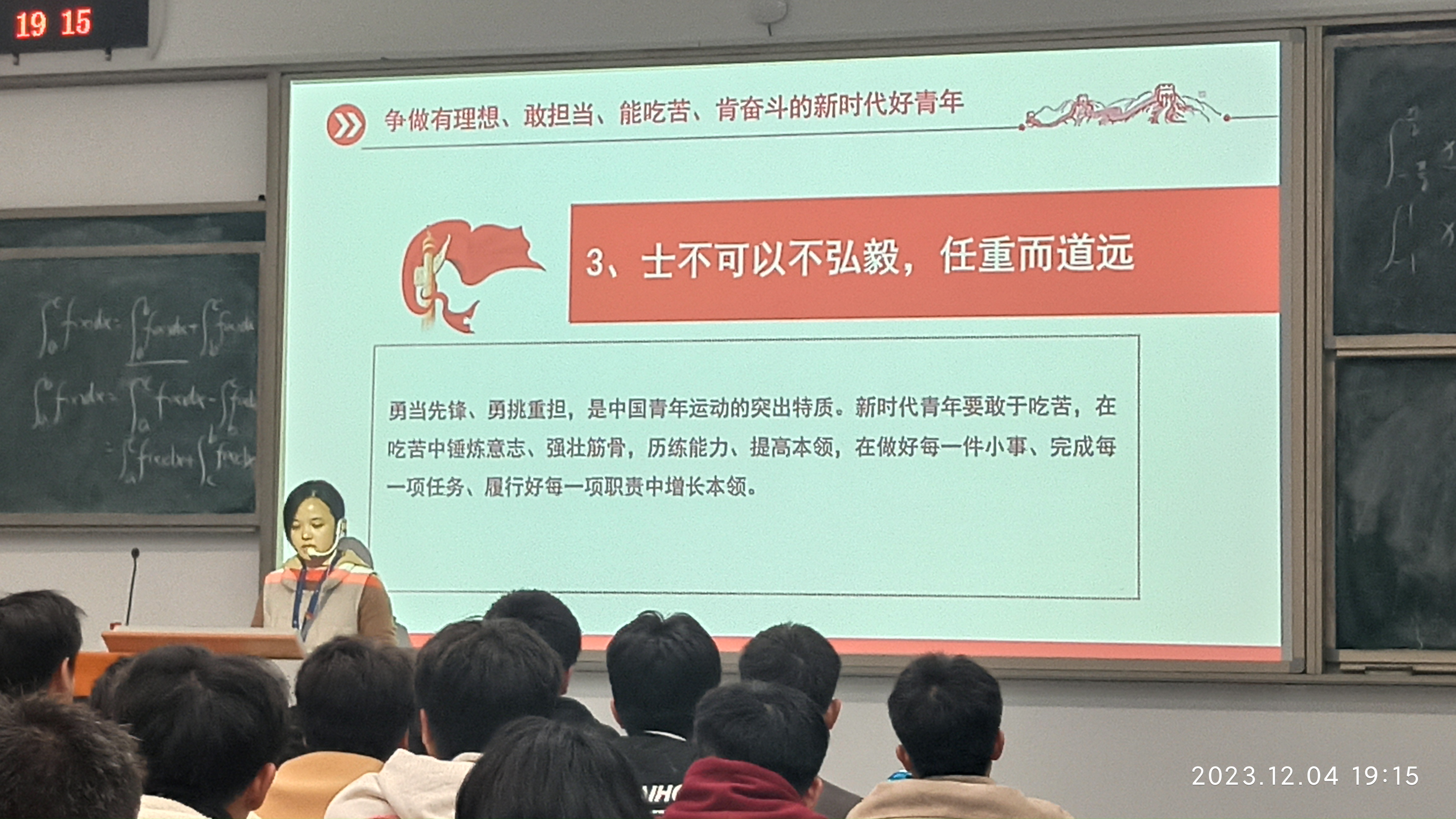 挺鷹擔(dān)當(dāng)?shù)Z青春,奮楫篤行向未來。為深入學(xué)習(xí)習(xí)近平總書記關(guān)于青年工作的重要思想,以及習(xí)近平總書記對青年一代的殷殷囑托和重要要求,2023年12月4日,汽車學(xué)院分團(tuán)委團(tuán)干部教師朱慧君老師,以“挺鷹擔(dān)當(dāng)?shù)Z青春,奮楫篤行向未來”為主題,面向汽車學(xué)院青年開展宣講活動(dòng),進(jìn)一步激發(fā)汽車青年強(qiáng)國有我的青春激情,爭做有理想、敢擔(dān)當(dāng)、能吃苦、肯奮斗的新時(shí)代好青年,在中國式現(xiàn)代化建設(shè)中挺膺擔(dān)當(dāng)。