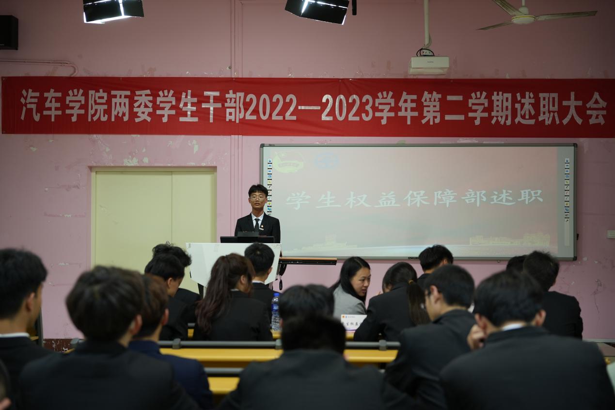 為學(xué)習(xí)貫徹習(xí)近平新時(shí)代中國特色社會(huì)主義思想,強(qiáng)化我院團(tuán)委、學(xué)生會(huì)組織建設(shè),推動(dòng)我院團(tuán)學(xué)干部的履職能力和作風(fēng)建設(shè),培養(yǎng)信仰堅(jiān)定、能力突出、素質(zhì)優(yōu)良、作風(fēng)過硬的青年骨干,進(jìn)一步激發(fā)學(xué)院高質(zhì)量動(dòng)能。汽車學(xué)院于2023年6月11日在北區(qū)2號(hào)樓1-3組織召開2022-2023學(xué)年第二學(xué)期兩委學(xué)生干部述職大會(huì),共14個(gè)部門開展述職匯報(bào)。