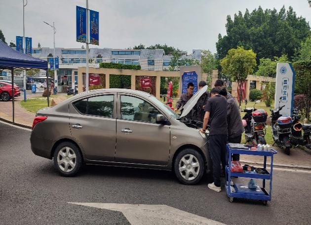 在現(xiàn)場職業(yè)技能服務(wù)社會環(huán)節(jié)(圖4圖5),汽車學(xué)院黃林火老師帶領(lǐng)學(xué)生進行了汽車保養(yǎng)和汽車修理等社會服務(wù),鍛煉了學(xué)生們的實踐技能、團隊協(xié)作和服務(wù)社會的能力。這些活動不僅檢驗了學(xué)生們的學(xué)習(xí)成果,也為他們提供了一個展示自我、交流學(xué)習(xí)的平臺。