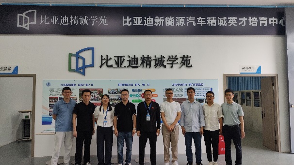 圖6 福建理工學(xué)校帶隊教師與我校教師在比亞迪實訓(xùn)室