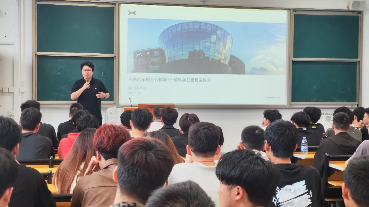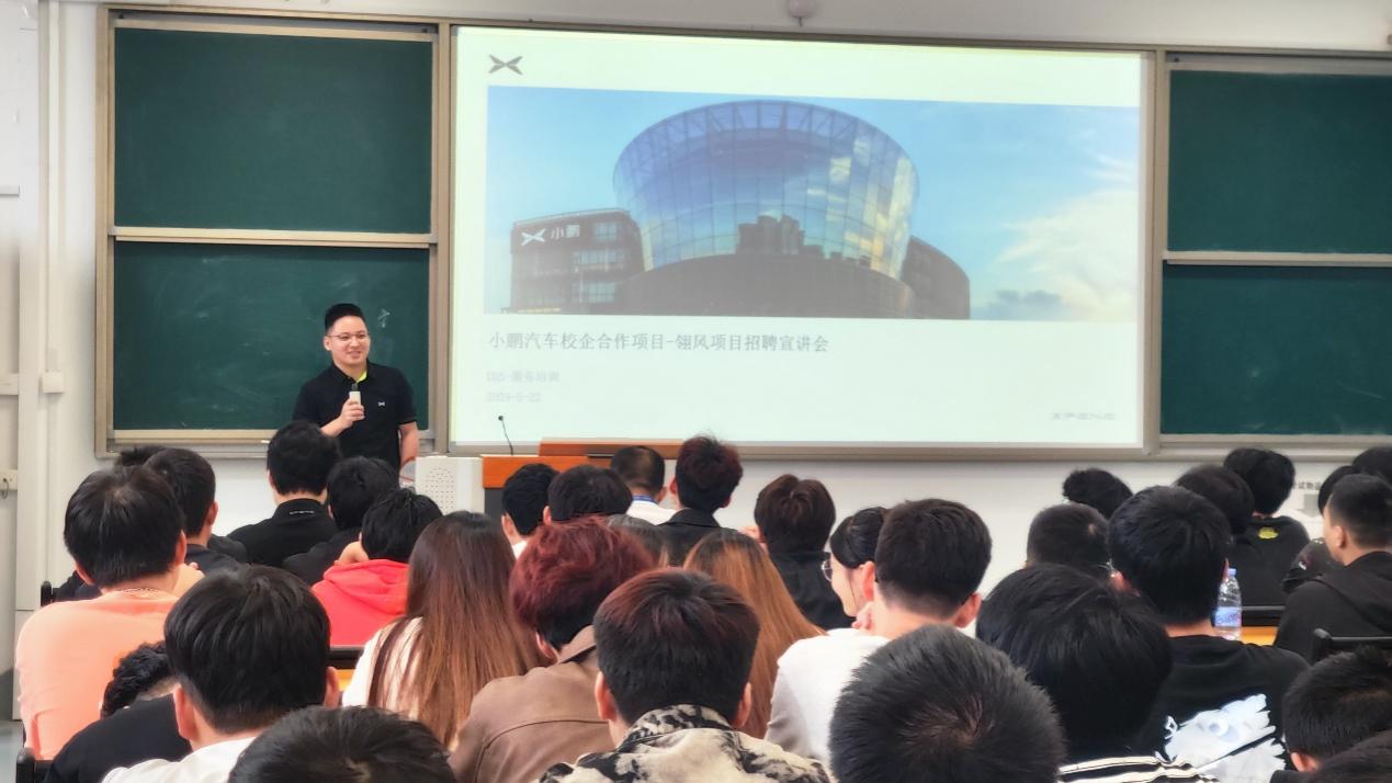 2024年5月22日,我院隆重舉辦了小鵬汽車“翎風(fēng)”項(xiàng)目2022級(jí)訂單班招聘宣講會(huì)。此次會(huì)議匯聚了小鵬汽車售后培訓(xùn)運(yùn)營(yíng)總監(jiān)郭晉嶸先生、廈門海滄服務(wù)中心售后店長(zhǎng)王杭昌先生,以及汽車學(xué)院副院長(zhǎng)林可春教授、汽車智能技術(shù)教研室的骨干教師團(tuán)隊(duì)和2022級(jí)汽車智能技術(shù)專業(yè)逾百名學(xué)生。會(huì)議由汽車智能技術(shù)教研室主任詹華主持。