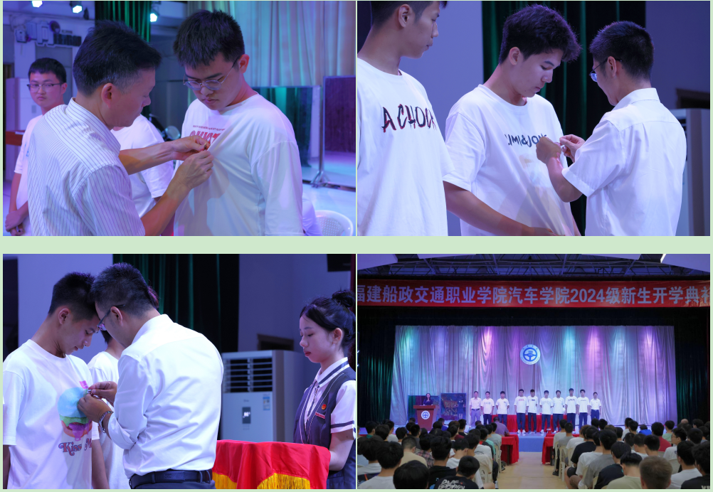佩戴校徽儀式上,汽車學(xué)院黨政領(lǐng)導(dǎo)班子成員為新生代表佩戴?;铡W源?,“求是自強,求實創(chuàng)新”的校訓(xùn)將鐫刻進新汽車學(xué)子的心底。