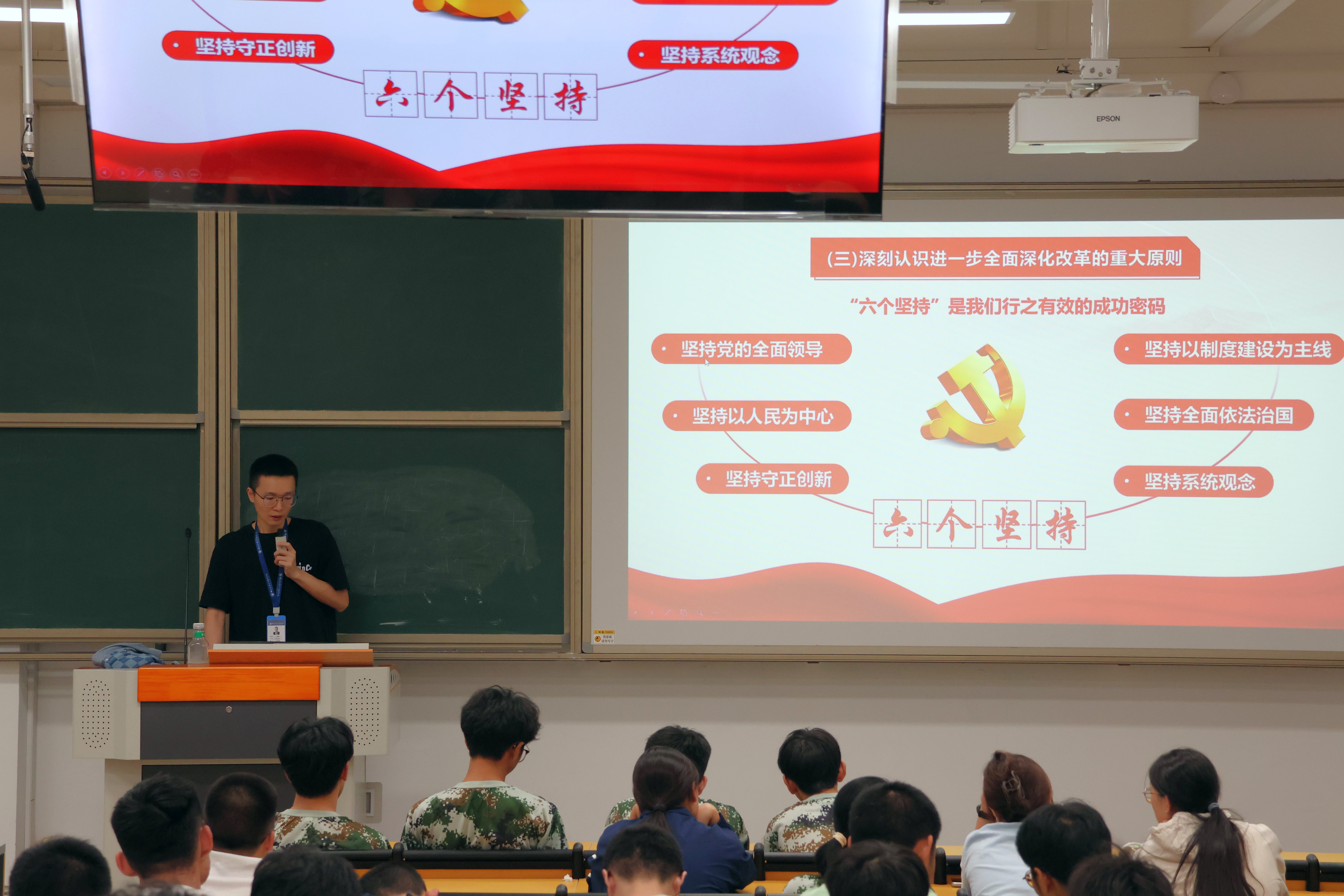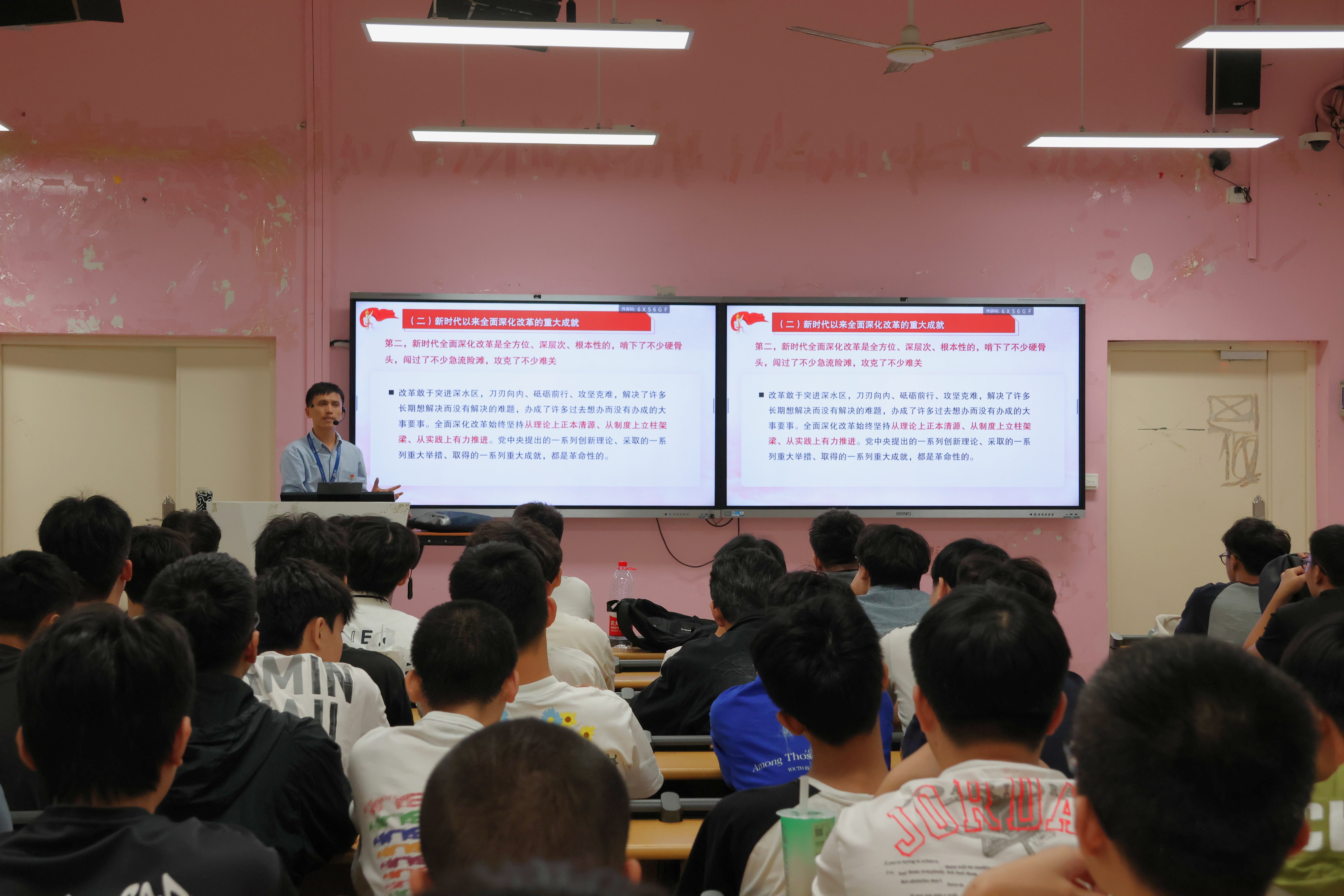 汽車學(xué)院輔導(dǎo)員余晨煒于10月9日,在北區(qū)求是樓第四階梯教室舉行宣講活動,24級汽車檢測與維修技術(shù)(3+2)專業(yè)共110名青年學(xué)子參會?;顒蝇F(xiàn)場,余晨煒老師圍繞“全面深化改革的重要性、必然性和主要內(nèi)容”等方面詳細闡述,通過深入解讀,幫助同學(xué)們進一步領(lǐng)會黨的二十屆三中全會的豐富內(nèi)涵和核心要義。激勵廣大青年學(xué)子要在深學(xué)細悟上下功夫,切實增強進一步全面深化改革的政治自覺、思想自覺和行動自覺,為實現(xiàn)中華民族偉大復(fù)興的中國夢貢獻青春力量。