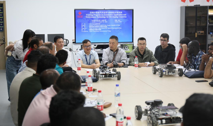 近日,我院協(xié)辦由國(guó)際發(fā)展合作署與商務(wù)部下達(dá)、福建省聯(lián)合國(guó)南合作網(wǎng)示范基地承辦的發(fā)展中國(guó)家汽車運(yùn)用與維修技術(shù)培訓(xùn)班,來(lái)自泰國(guó)、埃及、毛里求斯、巴拉圭、南蘇丹、格林達(dá)納等國(guó)的29名友人來(lái)校學(xué)習(xí)。10月24日,學(xué)院黨委書記陳宜大來(lái)到智能網(wǎng)聯(lián)汽車實(shí)訓(xùn)中心,同正在學(xué)習(xí)的外籍友人們座談,現(xiàn)場(chǎng)詢問(wèn)了此次培訓(xùn)班的課程安排,關(guān)心了學(xué)員的培訓(xùn)、生活情況。