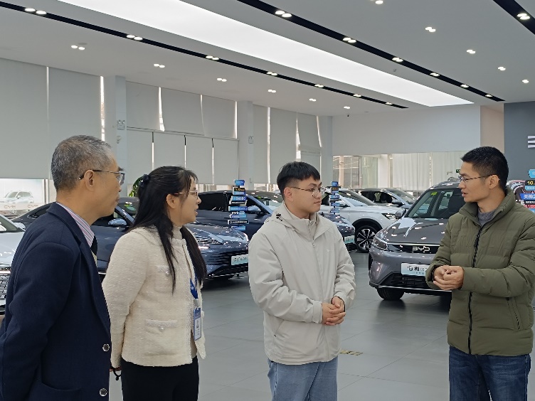 走訪中,學(xué)院領(lǐng)導(dǎo)詳細(xì)了解門(mén)店發(fā)展、業(yè)務(wù)及崗位需求,并詢問(wèn)實(shí)習(xí)生工作情況。榕興比亞迪總經(jīng)理黃譽(yù)對(duì)到訪表示歡迎,感謝學(xué)院長(zhǎng)期輸送人才,未來(lái)將提供更多實(shí)習(xí)就業(yè)機(jī)會(huì),共同培養(yǎng)高素質(zhì)技術(shù)人才。蘇慶列院長(zhǎng)感謝其對(duì)學(xué)生就業(yè)的支持,強(qiáng)調(diào)學(xué)院將繼續(xù)以就業(yè)為導(dǎo)向,深化校企合作,為畢業(yè)生搭建就業(yè)平臺(tái)。