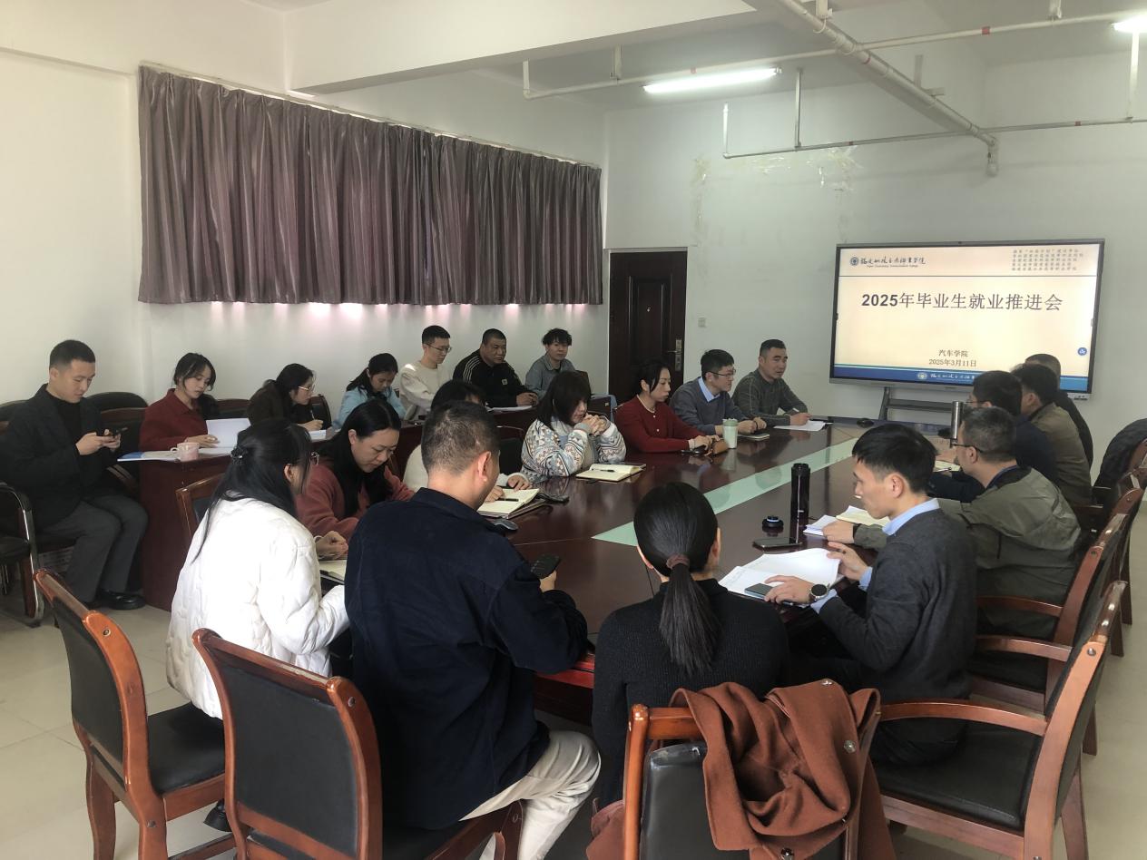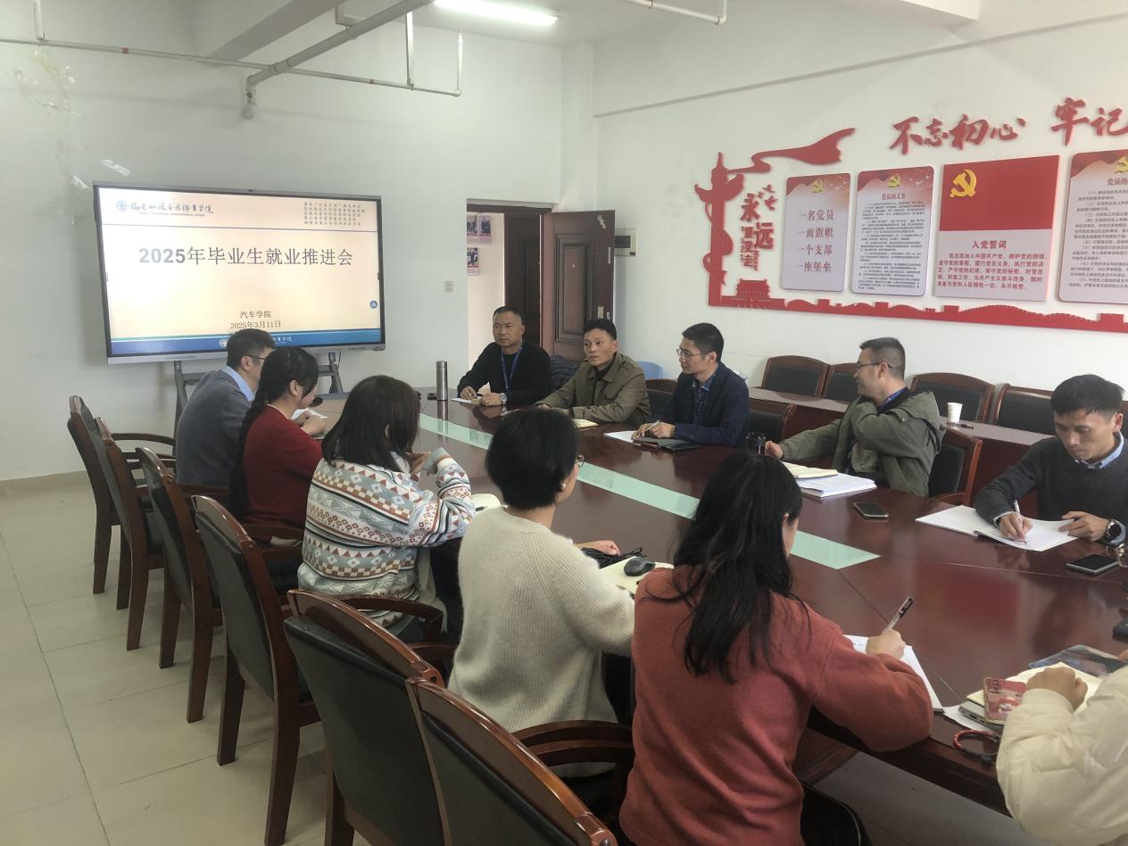 為扎實推進畢業(yè)生就業(yè)工作,助力畢業(yè)生高質(zhì)量就業(yè),汽車學院于3月11日召開2025屆畢業(yè)生就業(yè)推進會。會議由汽車學院黨總支書記蔡華錦主持,學院領導班子、各教研室主任、畢業(yè)班輔導員參加會議。