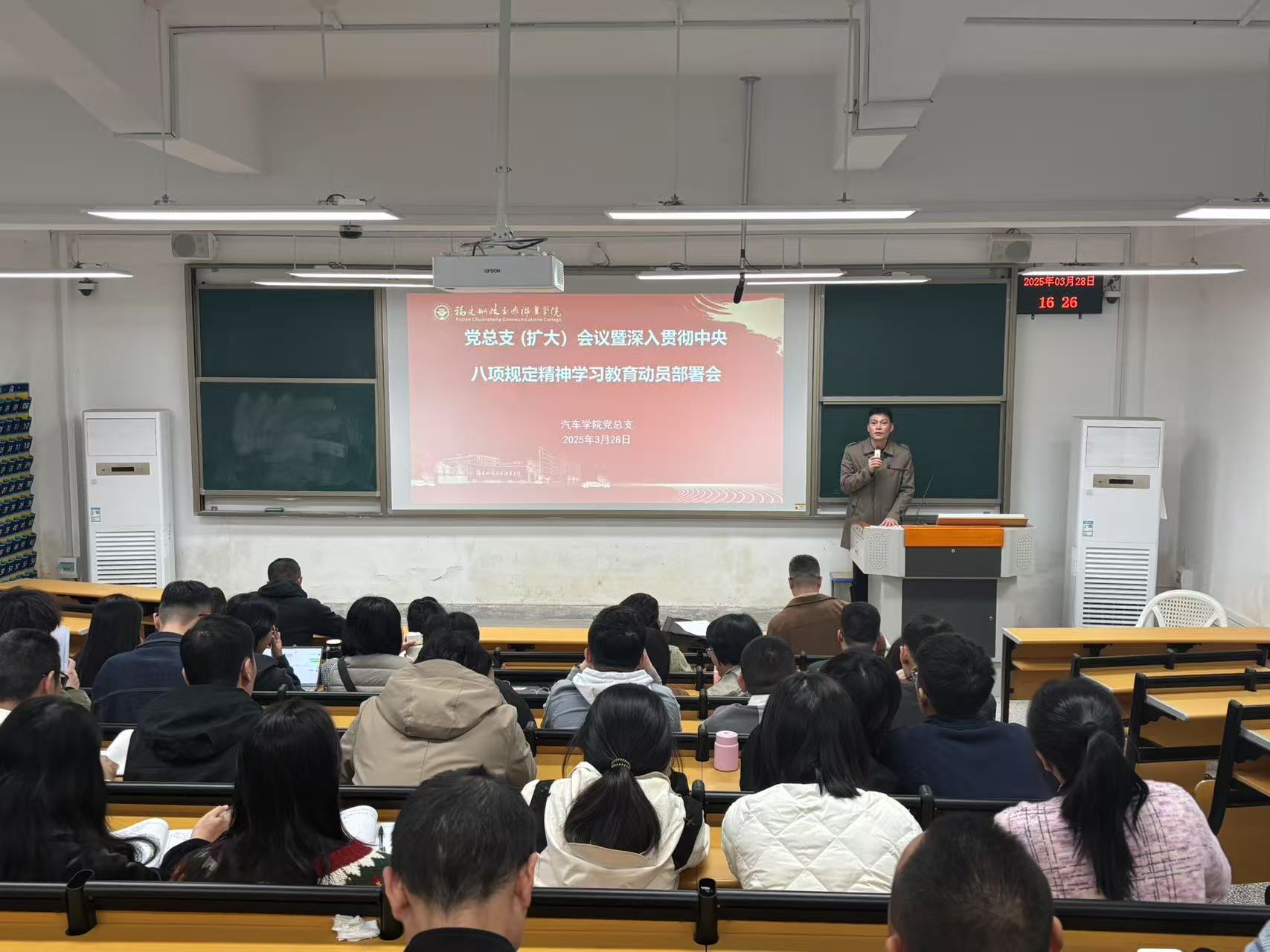 3月28日,汽車學(xué)院黨總支(擴(kuò)大)會(huì)議在汽一階教室召開。會(huì)議認(rèn)真學(xué)習(xí)貫徹習(xí)近平總書記關(guān)于深入貫徹中央八項(xiàng)規(guī)定精神學(xué)習(xí)教育的重要講話和重要指示精神,傳達(dá)校黨委(擴(kuò)大)會(huì)議暨深入貫徹中央八項(xiàng)規(guī)定精神學(xué)習(xí)教育部署會(huì)會(huì)議精神,布置學(xué)校學(xué)習(xí)教育工作方案,并動(dòng)員部署學(xué)習(xí)教育工作。會(huì)議由學(xué)院黨總支書記蔡華錦主持,全體黨員參加會(huì)議。