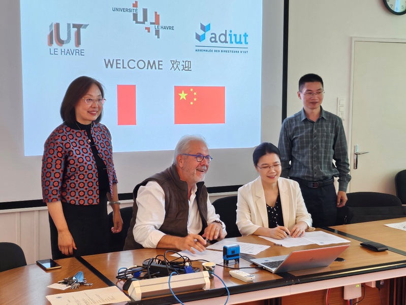 代表團(tuán)與諾曼底勒阿弗爾大學(xué)校長佩德羅·拉格什·多斯桑托斯Pedro Lages dos Santos及國際發(fā)展部負(fù)責(zé)人蒂埃里·塔貝利翁Thierry TABELLION等舉行會(huì)談,就雙方師生互訪、教科研合作,特別在港口與海洋產(chǎn)業(yè)人才培養(yǎng)合作方面達(dá)成共識(shí),并簽署校際合作備忘錄。