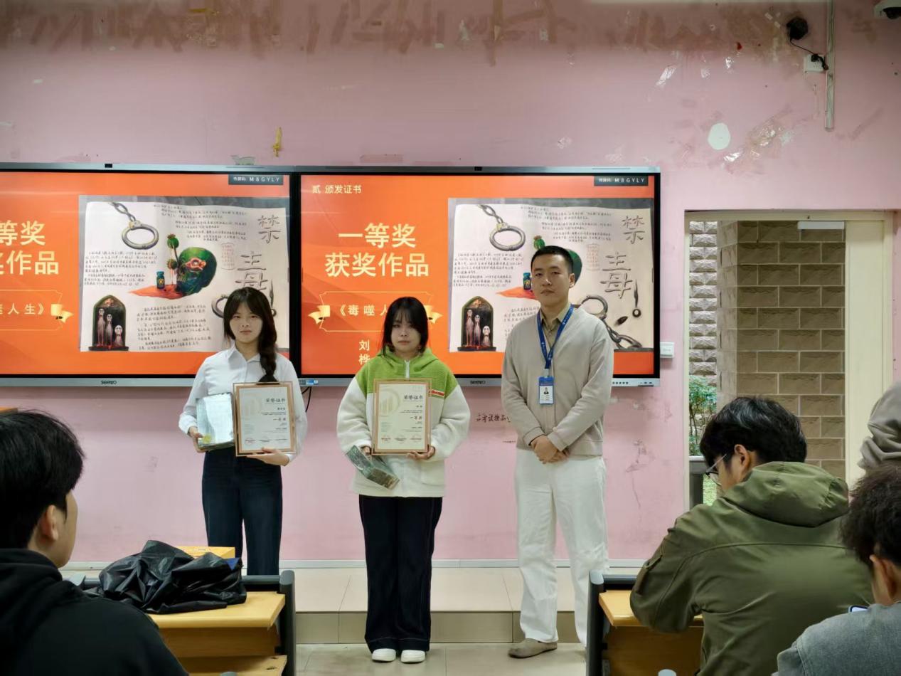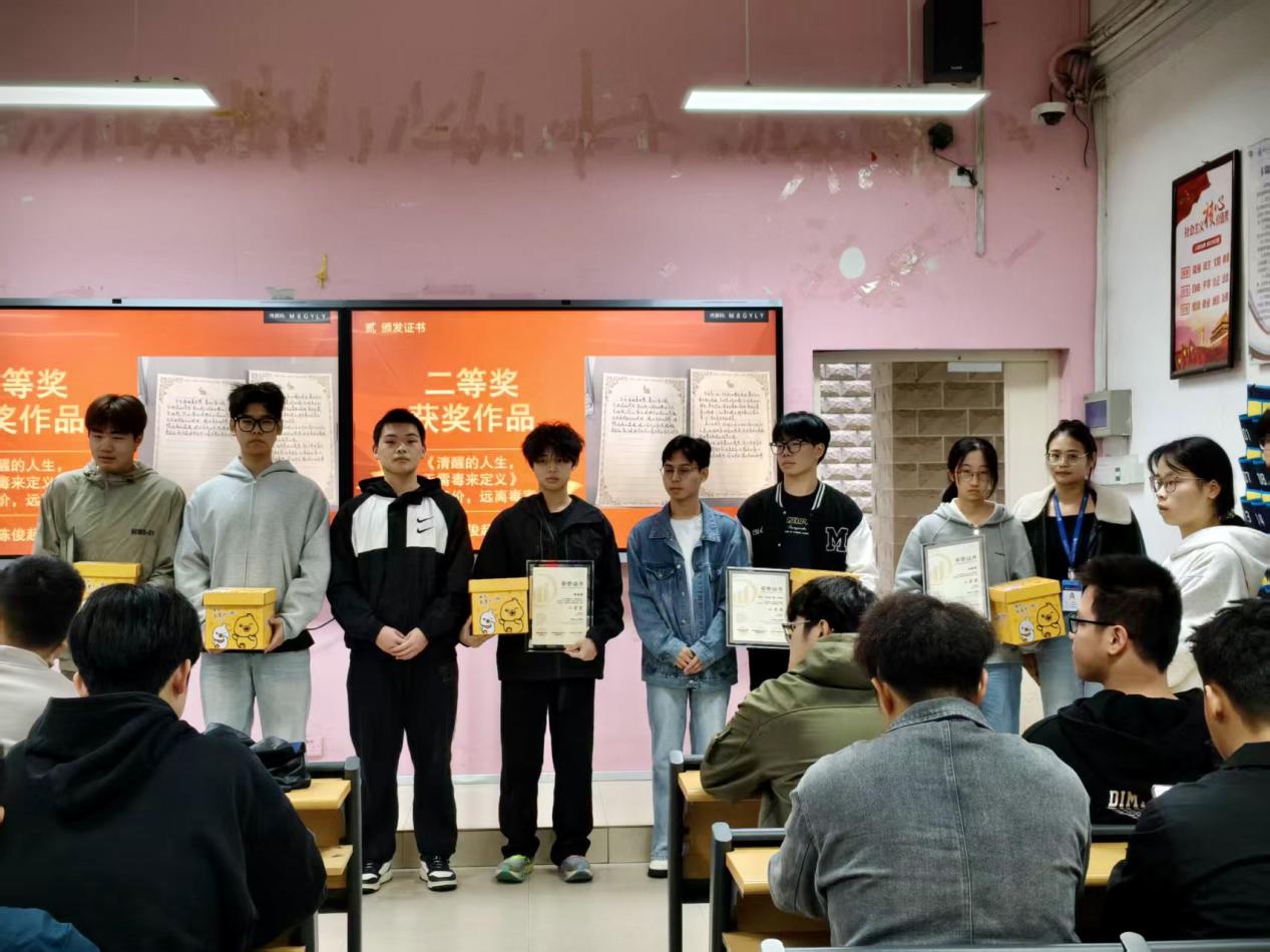 活動期間,累計收到作品28幅,禁毒作品內(nèi)容豐富,涵蓋了手抄報、繪畫、短視頻等多種形式。經(jīng)嚴格評審,2025年11月4日中午12:00,本次禁毒作品征集活動暨頒獎儀式在自強樓1-3教室隆重舉行,汽車學院輔導員、學生干部獲獎?wù)呒鞍嗉壌砉灿?/span>84人出席了儀式。