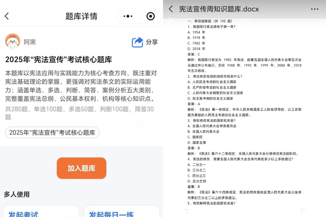 12月1日當天,汽車學院以線上答題平臺為依托,圍繞憲法基礎知識,涵蓋憲法的歷史沿革、基本內(nèi)容、公民的基本權利和義務、國家機構以及學生學習生活、汽車行業(yè)相關的法律法規(guī)等方面,組建知識答題題庫,設置了單選題、多選題、判斷題等多種題型,同時針對易錯題還增設了答案解析,有效幫助廣大同學深化對憲法內(nèi)容的理解,共計133名同學參加了答題活動。