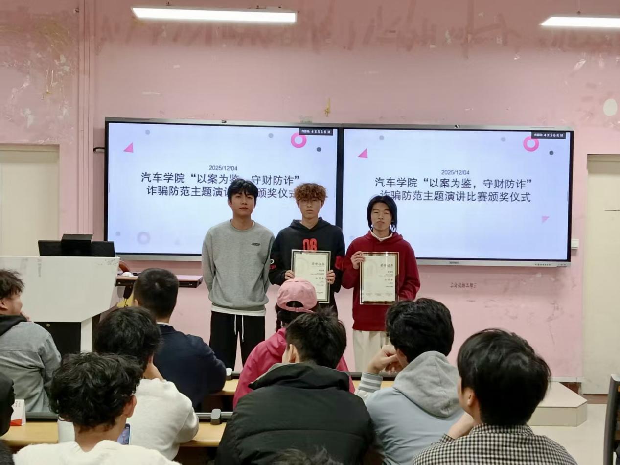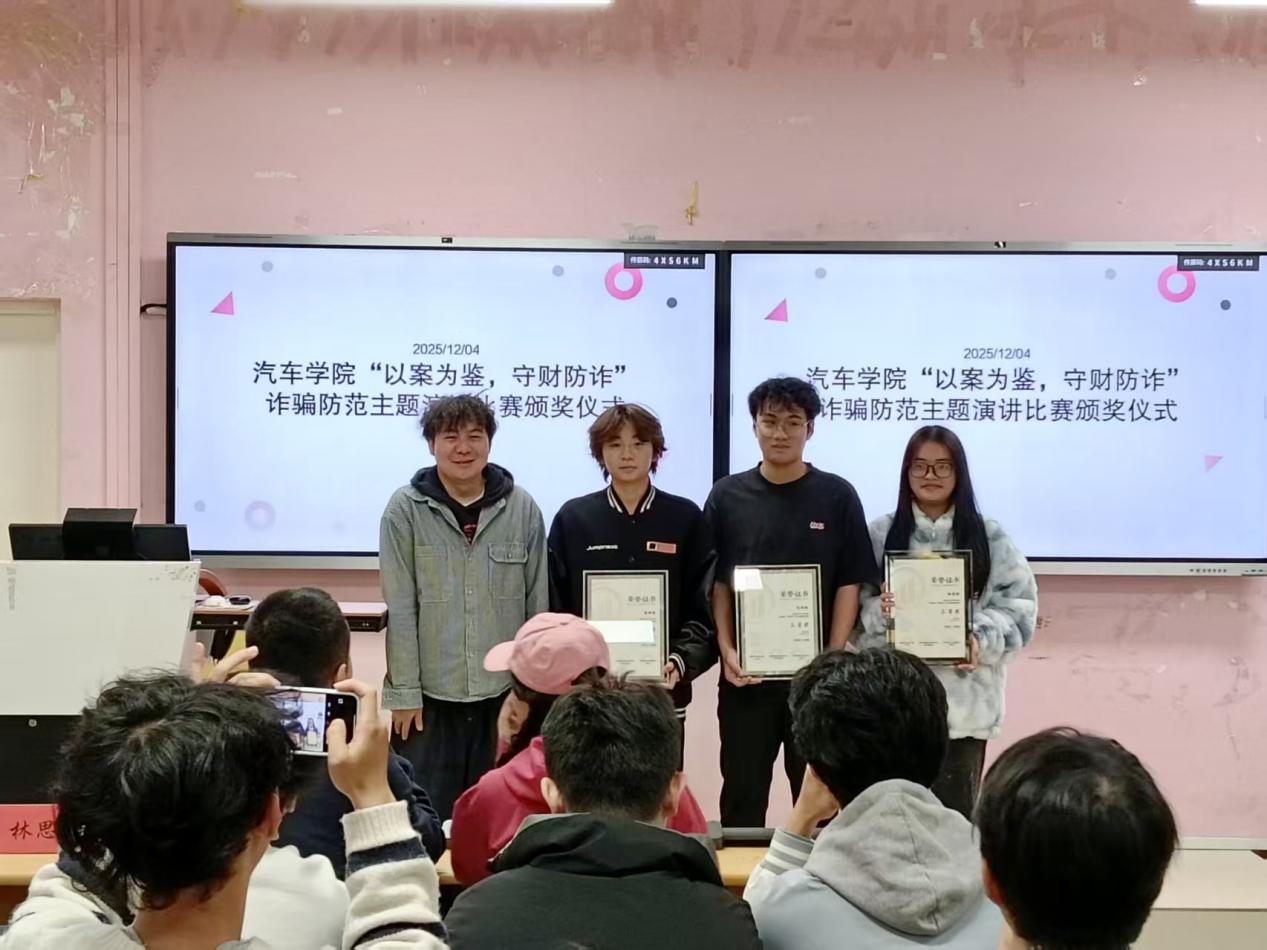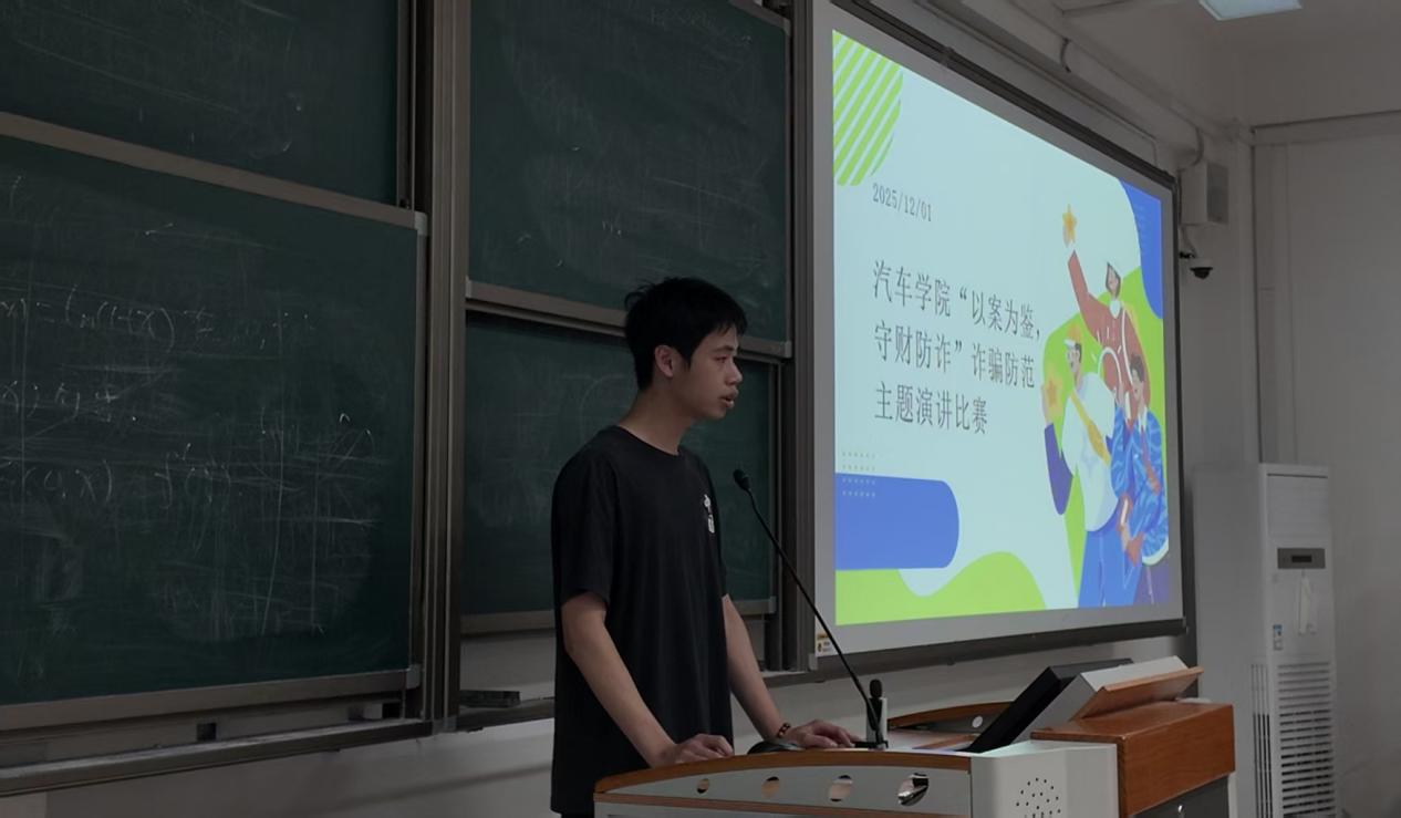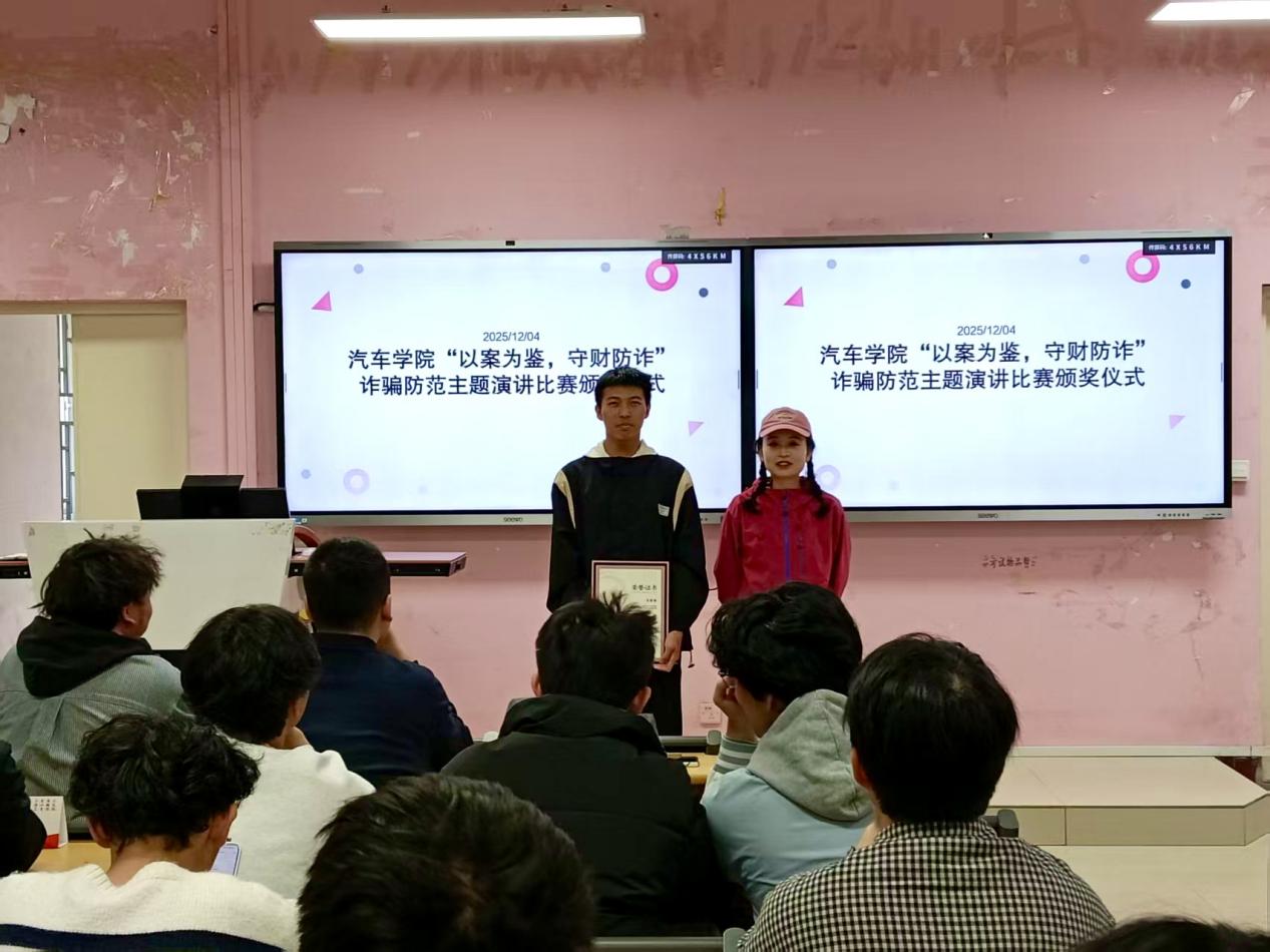 為全面提升廣大在校學(xué)生的防詐意識和能力,有效預(yù)防和減少涉校電信網(wǎng)絡(luò)詐騙犯罪及其關(guān)聯(lián)犯罪的發(fā)生。汽車學(xué)院于2025年12月1日晚19:00在福道園26號樓605教室成功舉辦了“以案為鑒,守財(cái)防詐”防范電信網(wǎng)絡(luò)詐騙主題演講活動(dòng),參賽選手、輔導(dǎo)員、學(xué)院兩委骨干、學(xué)生代表共計(jì)112人參加活動(dòng)。