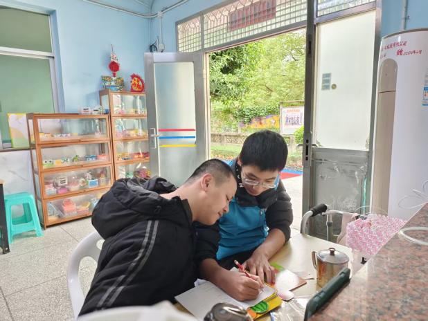 在金州社區(qū)福州市第二社會(huì)福利院,同學(xué)們化身“暖心陪伴官”,通過一對(duì)一結(jié)對(duì)幫扶的形式,以陪同運(yùn)動(dòng)鍛煉、教授基礎(chǔ)文化知識(shí)、開展暖心陪伴聊天等方式,建立10多名智力障礙和肢體殘疾等特殊群體的常態(tài)化陪伴機(jī)制,在關(guān)愛與守護(hù)的道路上,用青春書寫愛的篇章。