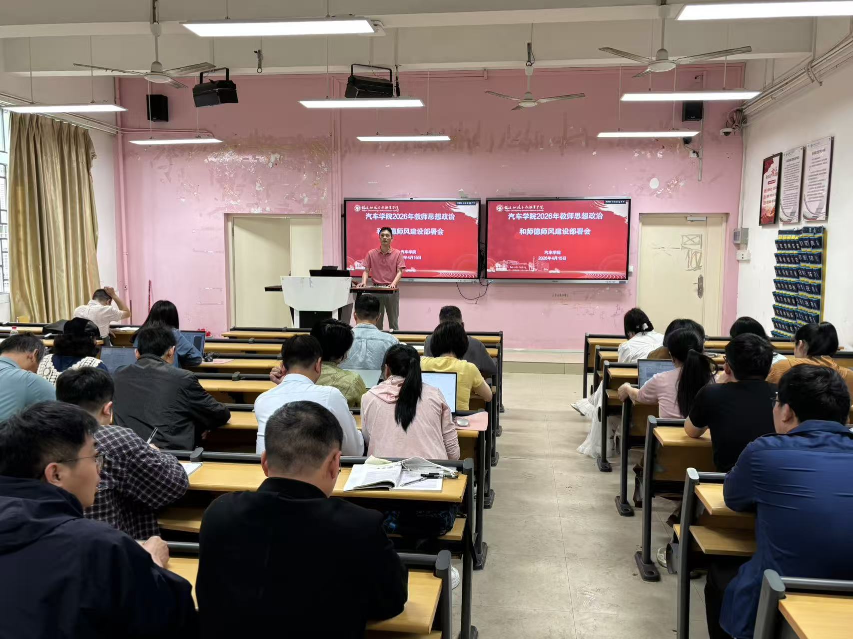 4月15日,學(xué)院在2#樓1-3教師召開2026年教師思想政治和師德師風(fēng)建設(shè)工作部署會(huì)。會(huì)議由學(xué)院黨總支書記蔡華錦主持,汽車學(xué)院全體教職工參加會(huì)議。