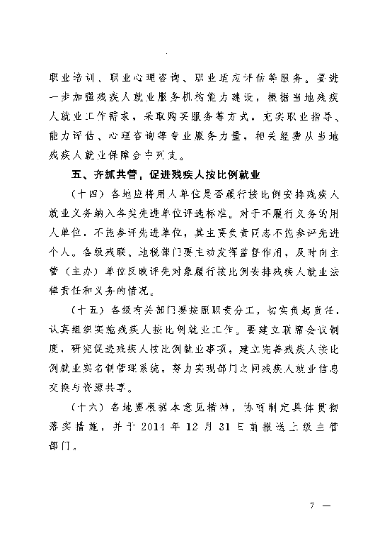 關(guān)于促進(jìn)殘疾人按比例就業(yè)的實(shí)施意見
