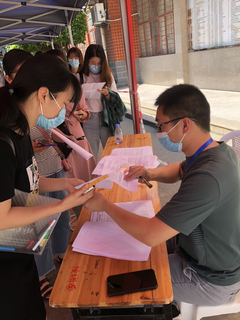 6月20日,人事處公開招聘代理人員,包括教師及輔導(dǎo)員合計(jì)33個(gè)崗位,183位應(yīng)聘人員,為防控疫情、避免人員聚集,機(jī)關(guān)第四黨支部決定分批錯(cuò)峰開展筆試入場(chǎng),嚴(yán)格按照學(xué)院的防疫要求,組織考生們嚴(yán)格按照入校規(guī)范流程要求,有序進(jìn)入考場(chǎng)。