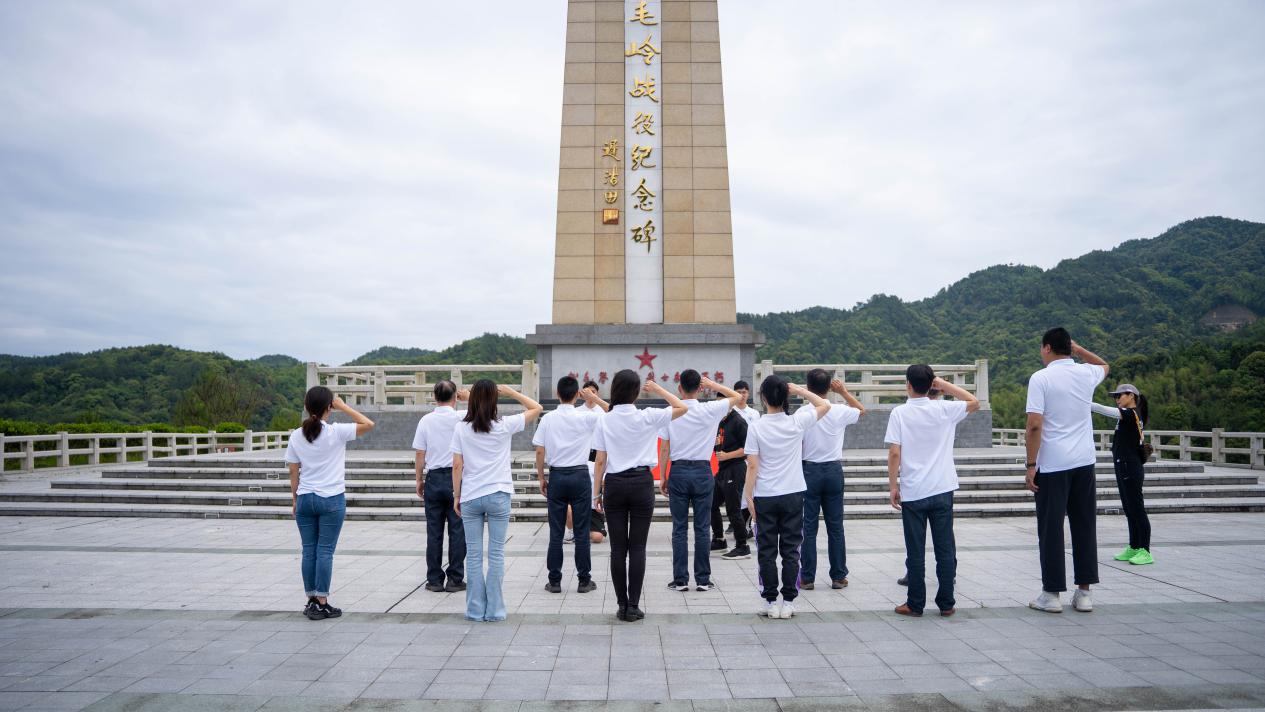 在中央蘇區(qū)松毛嶺戰(zhàn)役紀(jì)念碑前,全體黨員師生站立在這一片血染的紅土地上莊嚴(yán)宣誓,鏗鏘有力的入黨誓詞在松林山間回響。