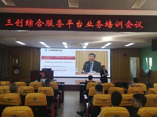 習(xí)近平總書記在全國教育大會強(qiáng)調(diào),要“以創(chuàng)造之教育培養(yǎng)創(chuàng)造之人才,以創(chuàng)造之人才造就創(chuàng)新之國家”,把創(chuàng)新創(chuàng)業(yè)教育貫穿于人才培養(yǎng)全過程,讓創(chuàng)新的基因根植于學(xué)生之中,培養(yǎng)造就更好適應(yīng)和引領(lǐng)創(chuàng)新發(fā)展的各類人才。因此,學(xué)校創(chuàng)新創(chuàng)業(yè)教育的體系構(gòu)建、創(chuàng)新創(chuàng)業(yè)師資培養(yǎng)就尤為迫切和重要。2020年10月28號,由教務(wù)處、創(chuàng)新創(chuàng)業(yè)學(xué)院牽頭,組織召開三創(chuàng)平臺業(yè)務(wù)培訓(xùn)會議,分管創(chuàng)新創(chuàng)業(yè)的二級學(xué)院領(lǐng)導(dǎo)及聯(lián)系人、專業(yè)教研室主任、創(chuàng)新創(chuàng)業(yè)指導(dǎo)教師、大學(xué)生就業(yè)創(chuàng)業(yè)教研室教師參加會議。