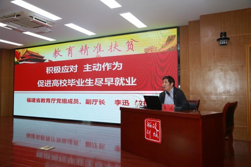 李迅強(qiáng)調(diào),新時期新形勢新要求,給大學(xué)生就業(yè)創(chuàng)業(yè)提供了機(jī)遇,也對我省的就業(yè)創(chuàng)業(yè)工作提出了更高的要求。各級高校要堅持以習(xí)近平新時代中國特色社會主義思想為統(tǒng)領(lǐng),參悟透、領(lǐng)會準(zhǔn)、運用好習(xí)近平總書記關(guān)于教育的重要論述,以更加昂揚的激情、更加飽滿的熱情、更加有效的作為,積極投身到就業(yè)創(chuàng)業(yè)指導(dǎo)服務(wù)工作中,支持大學(xué)生就業(yè)創(chuàng)業(yè),助力大學(xué)生唱響更加嘹亮的就業(yè)之歌、創(chuàng)業(yè)之歌,為福建省高質(zhì)量發(fā)展做出應(yīng)有的貢獻(xiàn)。