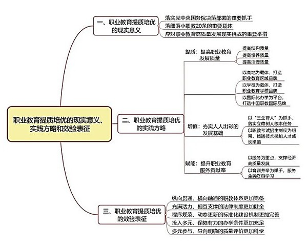所謂提質(zhì),至少要從教育結(jié)構(gòu)、人才培養(yǎng)、治理水平三方面提升職業(yè)教育質(zhì)量。結(jié)構(gòu)質(zhì)量的核心是完善體系建設(shè),人才培養(yǎng)質(zhì)量的核心是推進“三教”改革,治理質(zhì)量的核心是構(gòu)建多元參與的質(zhì)量治理格局。