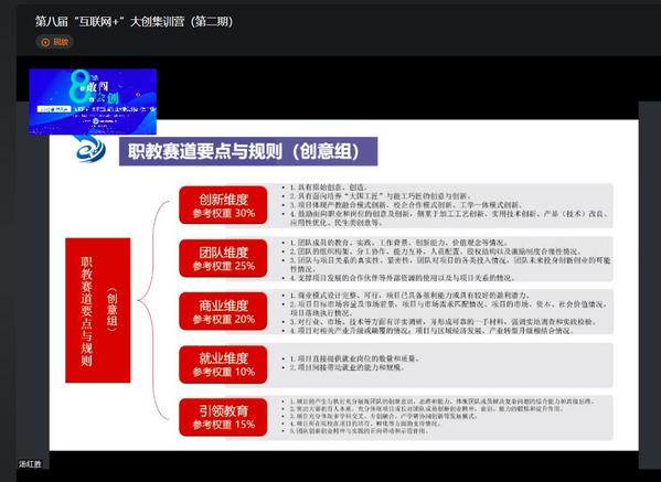 為確保培訓的正常進行,創(chuàng)新創(chuàng)業(yè)學院主動聯(lián)系各職業(yè)院校了解需求,尋找合適的線上培訓平臺,組織報名,對接專家,安排課程,盡心盡力做好集訓準備工作。在大家共同努力下,三天四場的線上培訓順利完成。每場講座全省職業(yè)院校和應用型本科院校師生踴躍參加,培訓組織有序,線上授課順暢,討論互動環(huán)節(jié)氣氛熱烈,參訓的師生表示:本次集訓營讓大家對“互聯(lián)網(wǎng)+”大學生創(chuàng)新創(chuàng)業(yè)大賽的政策有了更加直觀體會和準確認知,明確了大賽項目培育的重點和核心邏輯,提升了項目團隊的參賽信心,為下一階段校賽和省賽打下良好基礎。培訓結(jié)束,我們還安排回放和授課的課件分享,為奮戰(zhàn)在抗疫一線的泉州和廈門職業(yè)院校師生提供再學習機會。